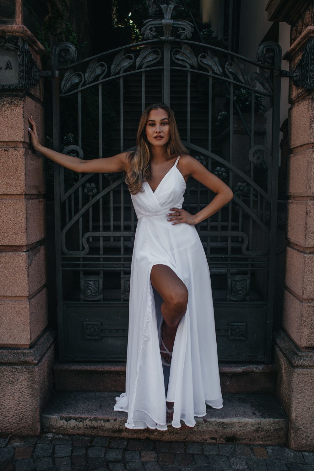 Biała satynowa sukienka Barcelona idealnie sprawdziła się podczas pobytu we Włoszech. Jest to również idealna propozycja na wieczór panieński dla Panny Młodej. Znajdziesz ją u nas w kilku kolorach.
