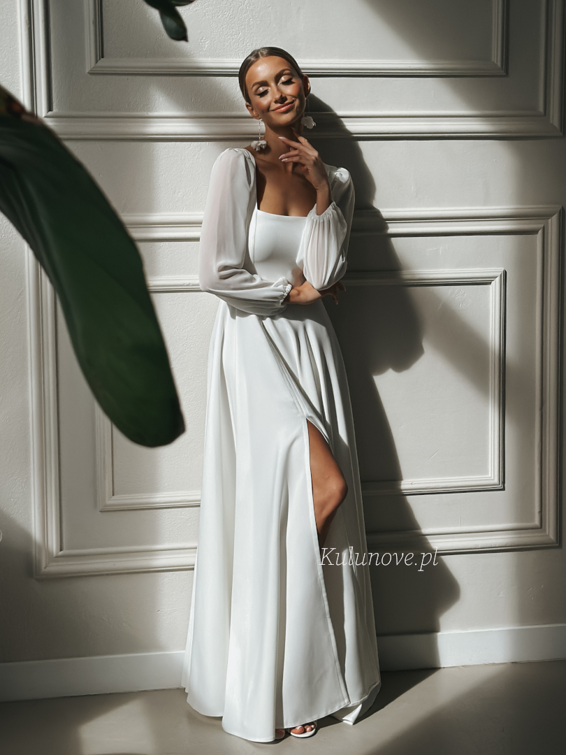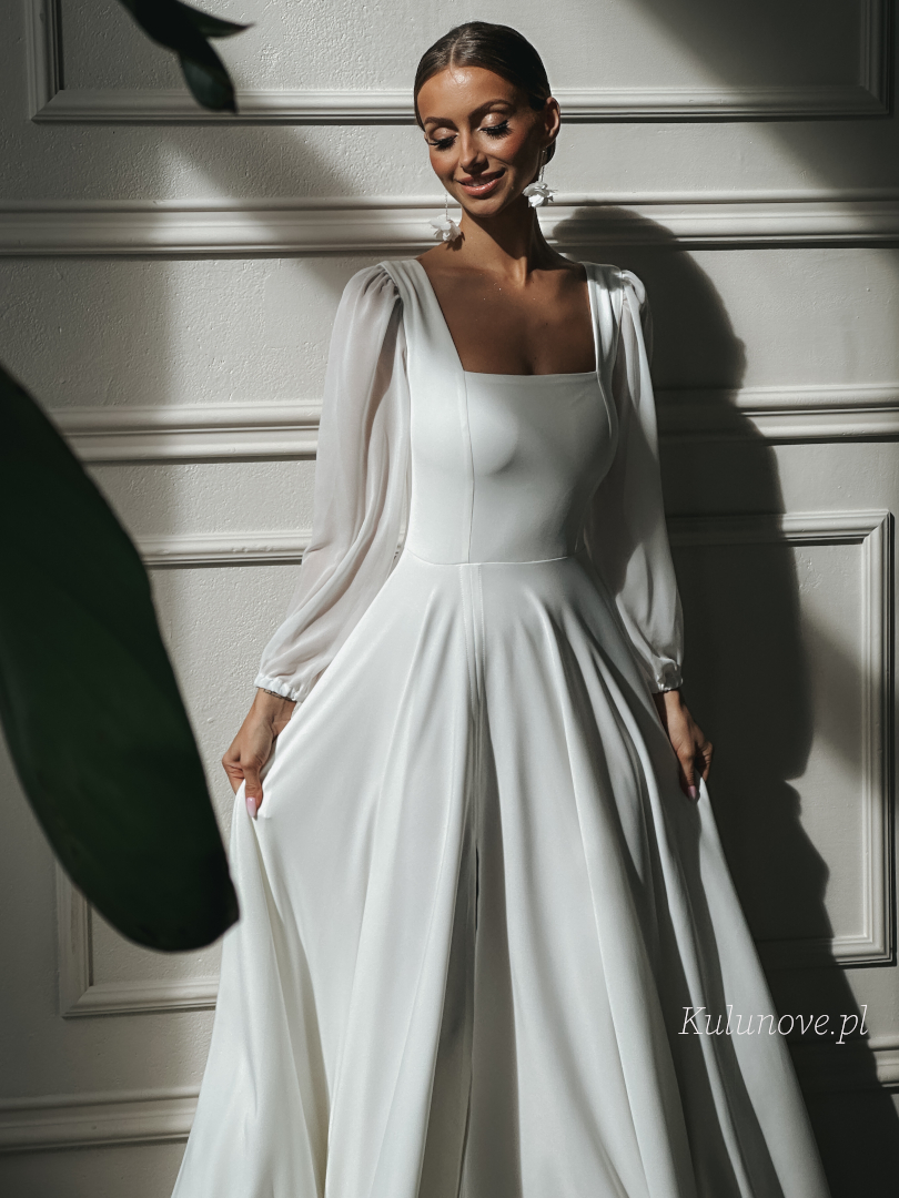 Świetnie sprawdzi się na ślub dla przyszłej Panny Młodej, która ceni sobie prostotę oraz szyk.