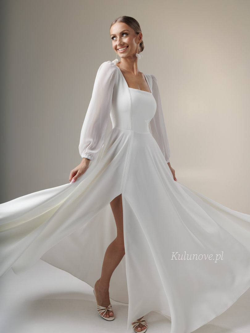 Posiada przewiewne długie szyfonowe rękawy i rozłożysty dół.