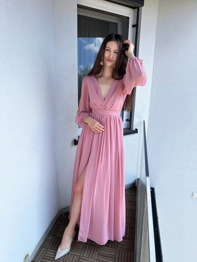 Andromeda - długa połyskująca sukienka z krótkim rękawkiem Sukienki dla wysokich kobiet Outlet
