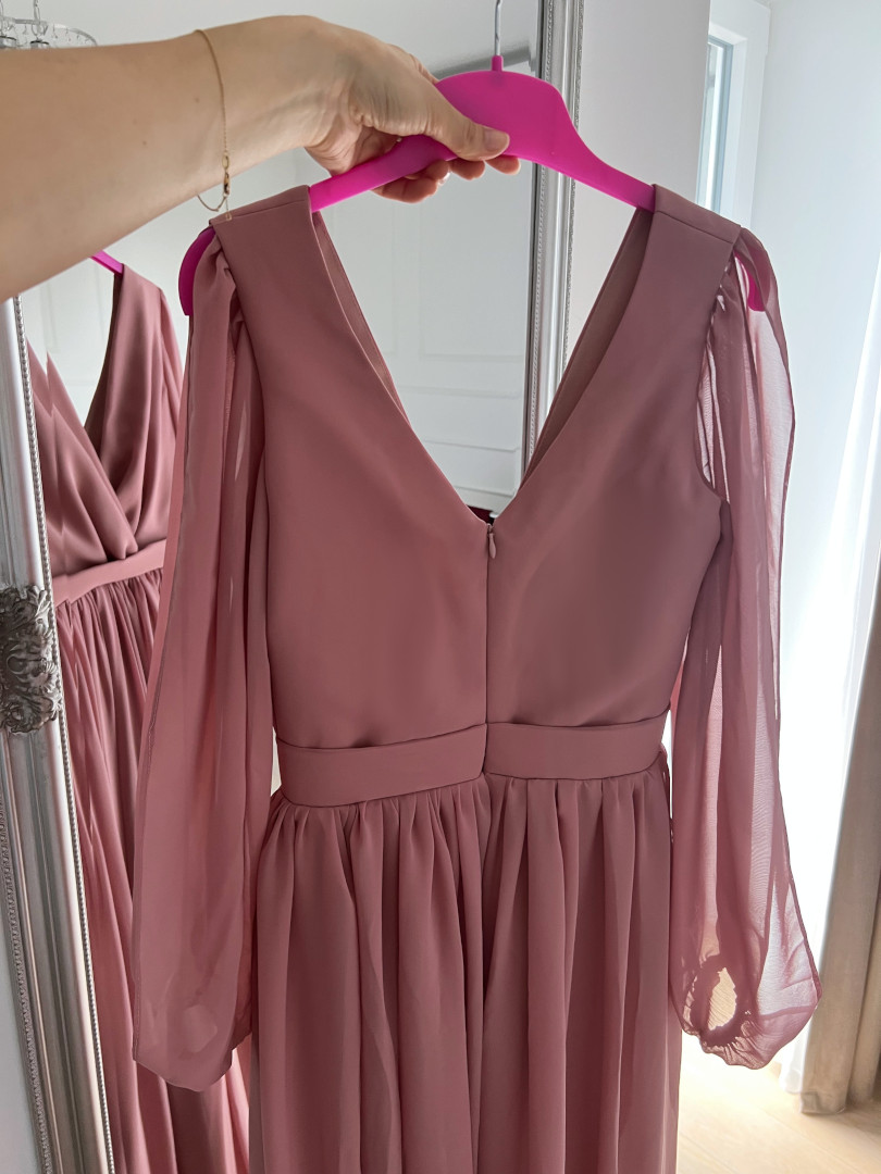 Lianna - czekoladowa dopasowana sukienka na długi rękaw z usztywnianymi ramionami Druhny Sukienki plus size
