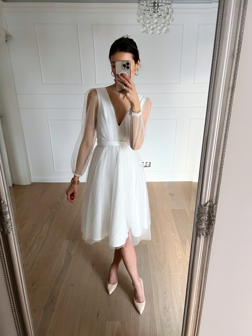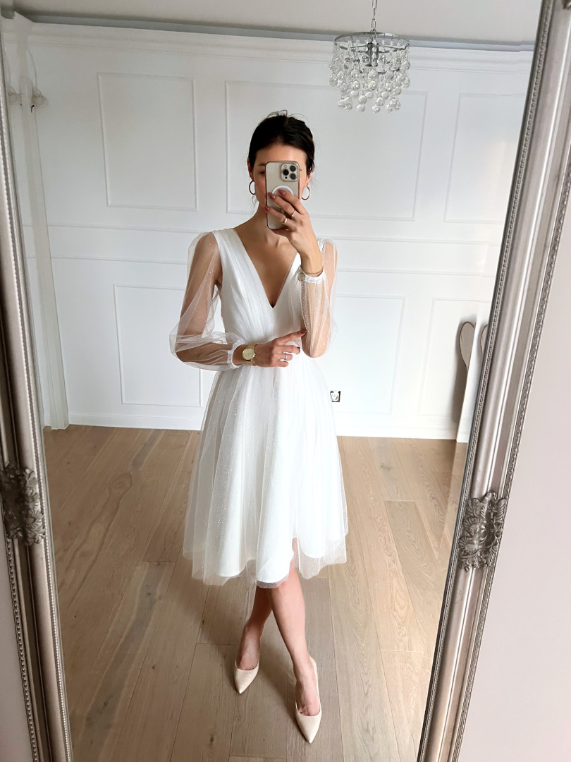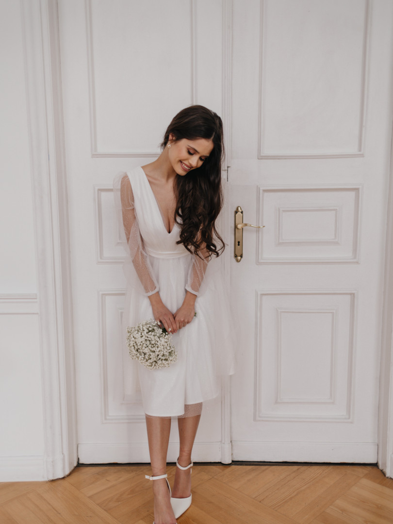 Idealna sukienka na elegancką uroczystość lub ślub cywilny.