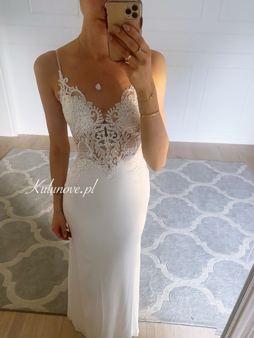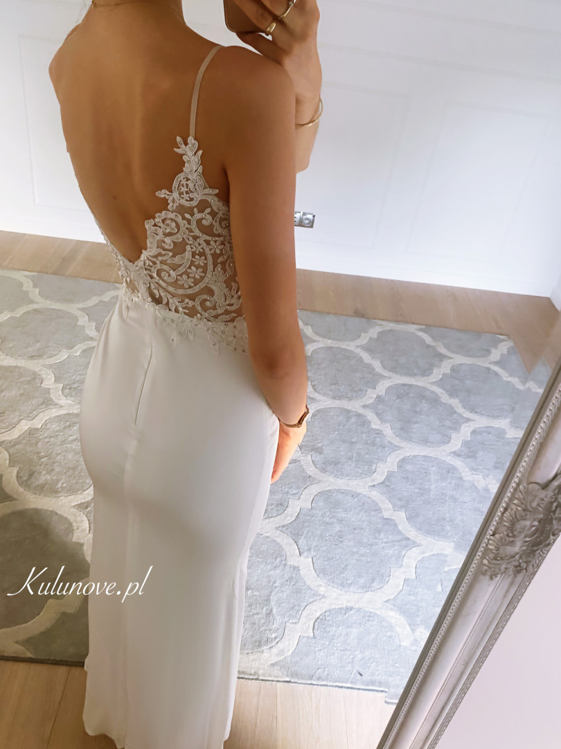 Cynthia - klasyczna, prosta suknia w kolorze śmietankowym Okazje