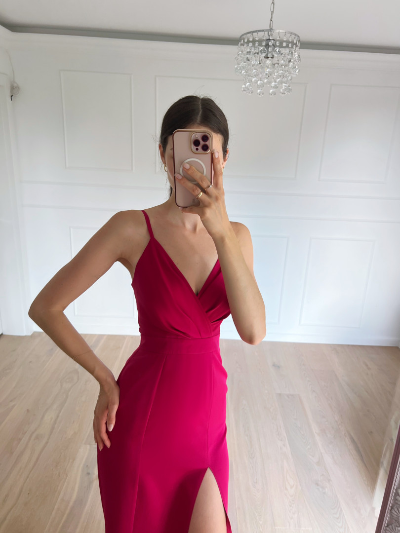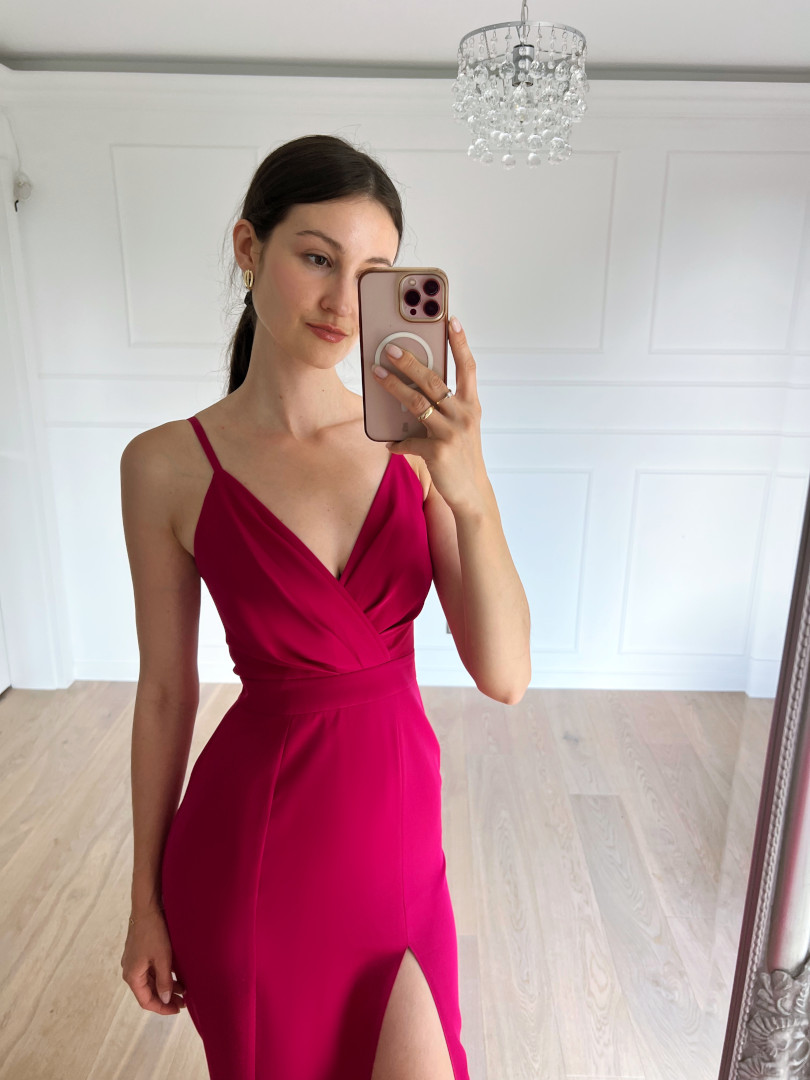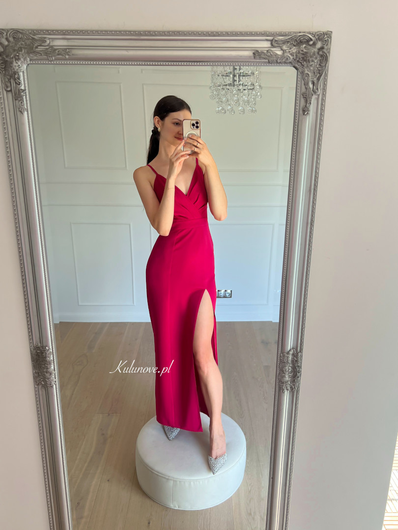 Andrea - elegancka prosta sukienka z dekoltem na zakładkę w kolorze fuksji