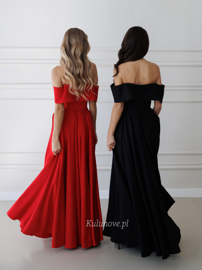 Angelina maxi - czarna sukienka maxi szyta na szerokim kole z efektownym dekoltem odsłaniającym ramiona