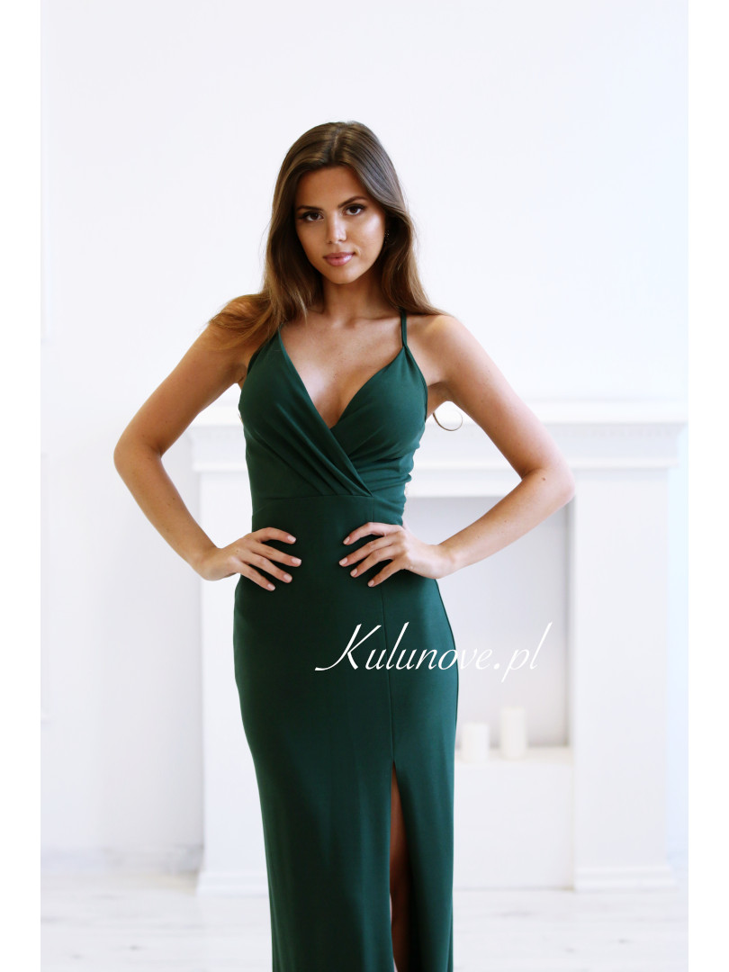 Elegancka sukienka na ramiączka z elastycznego materiału.