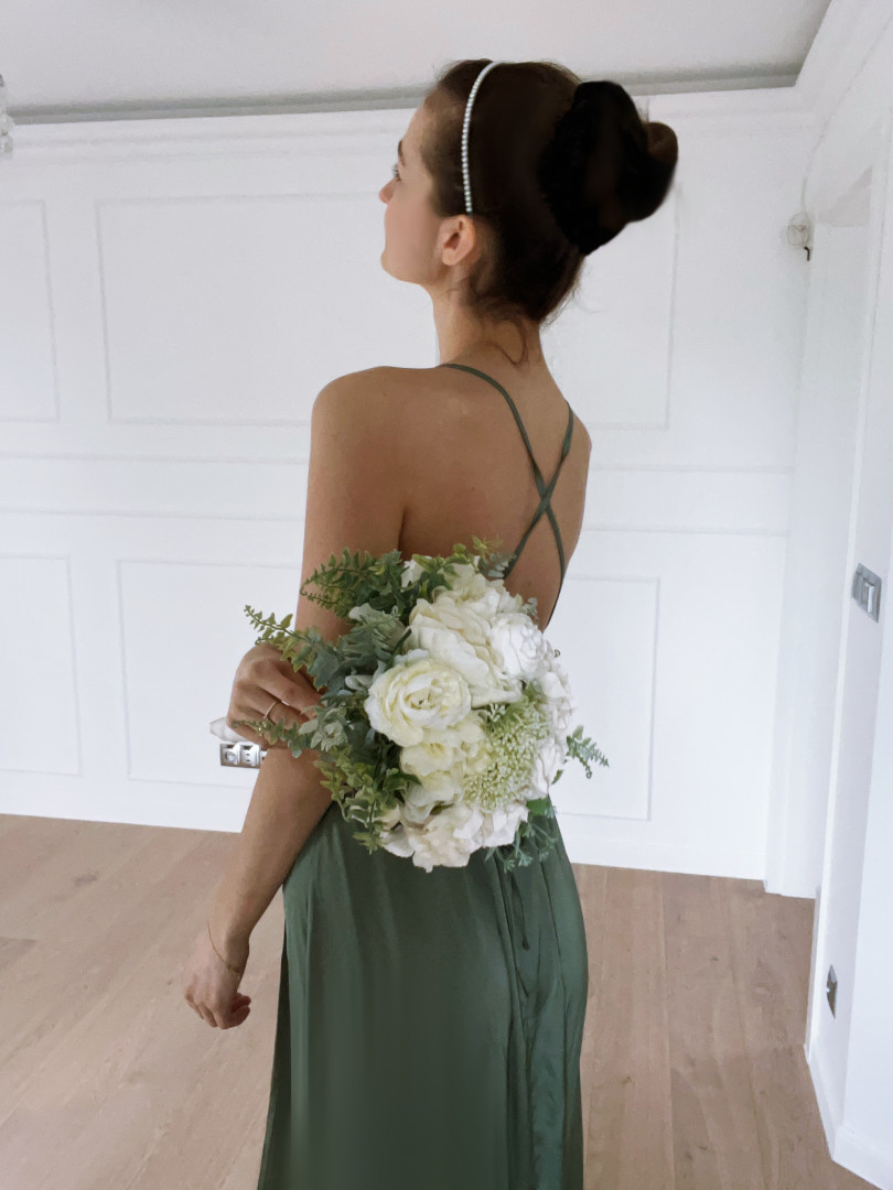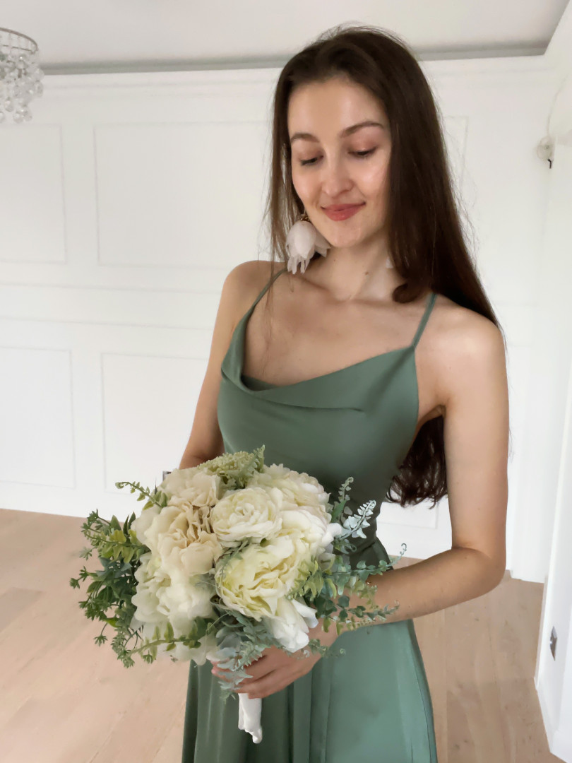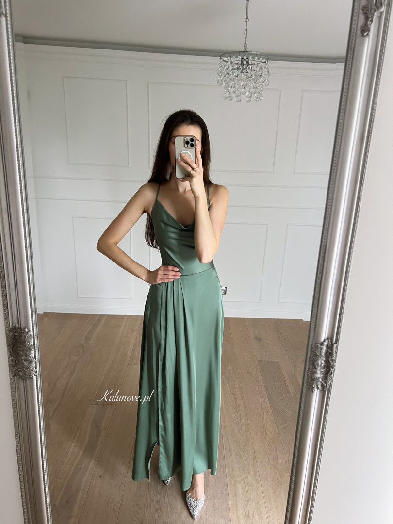 Ava - satynowa wiązana sukienka maxi w kolorze pistacjowym
