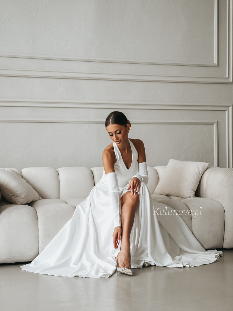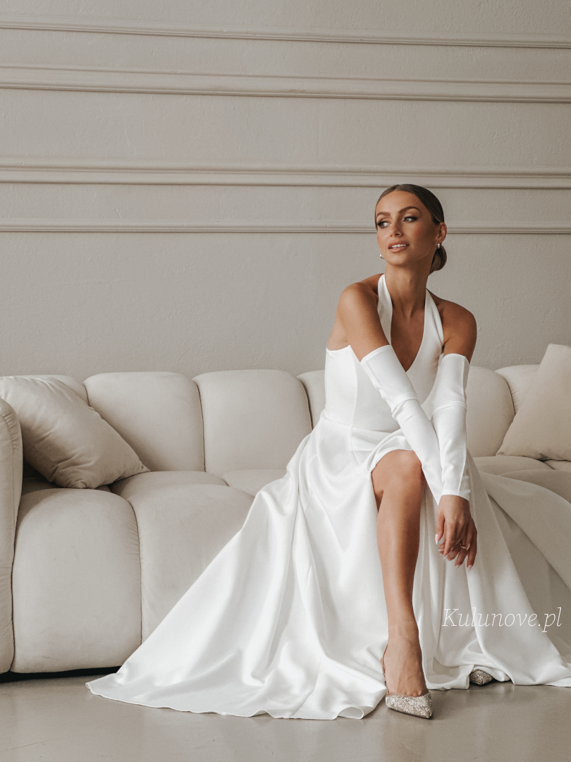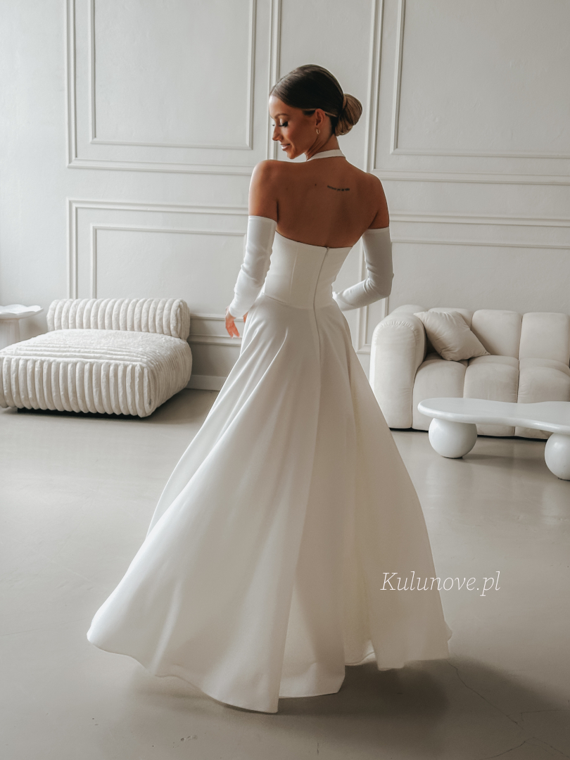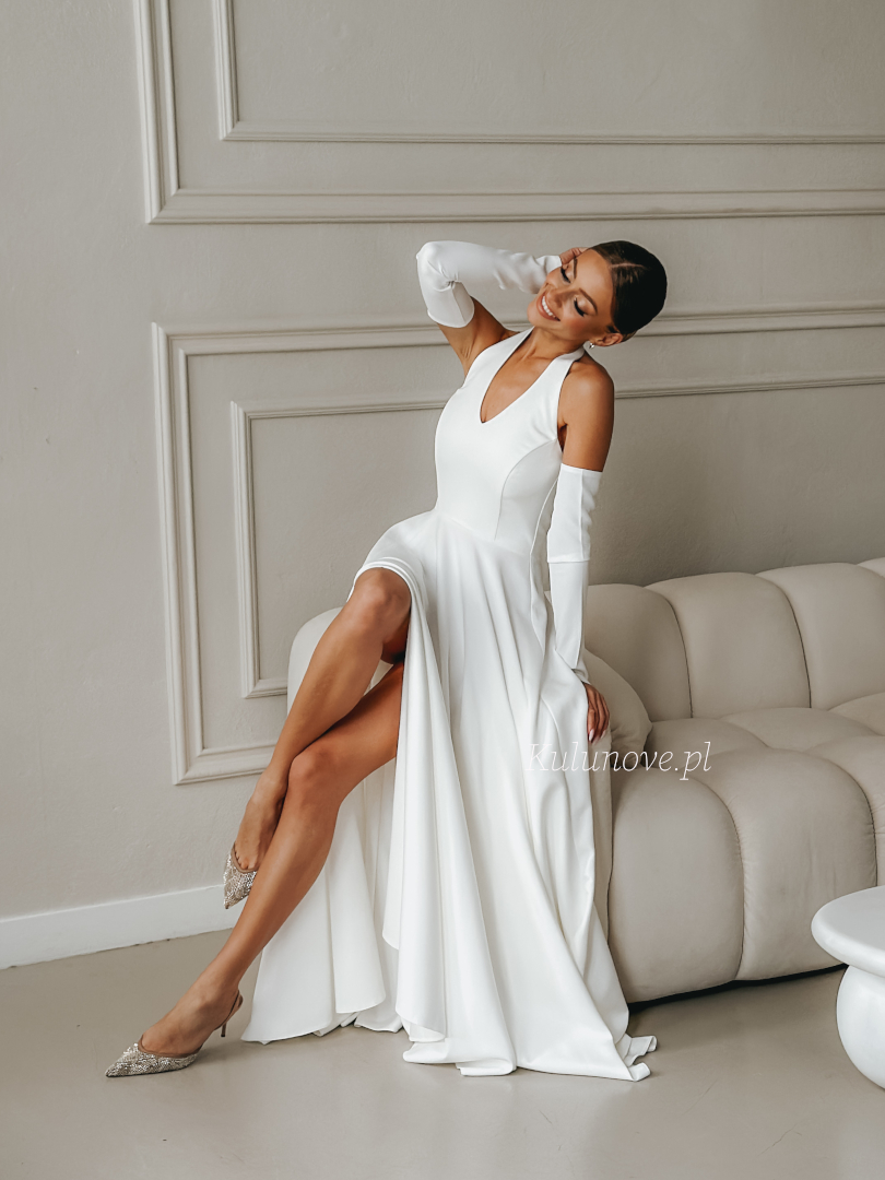 Baby - ślubna sukienka maxi w kolorze ecru z efektownym dekoltem