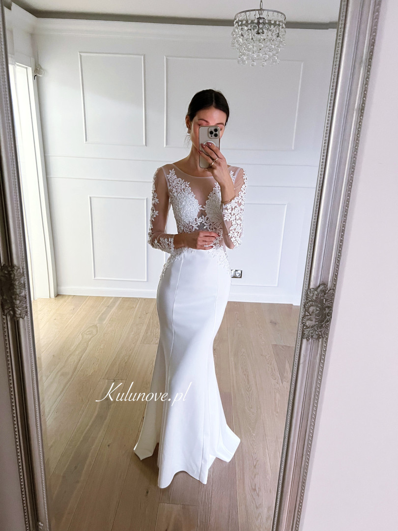 Bella - koronkowa suknia ślubna rybka na długi rękaw