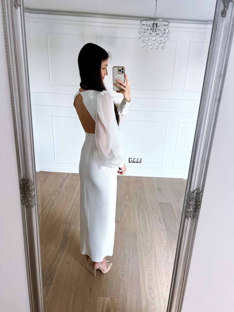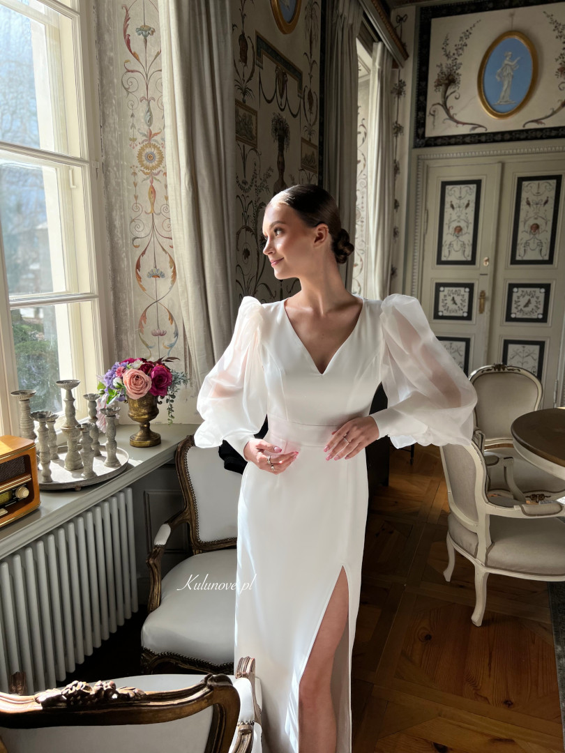 Bellucci - prosta suknia ślubna z odkrytymi plecami i bufiastymi rękawami