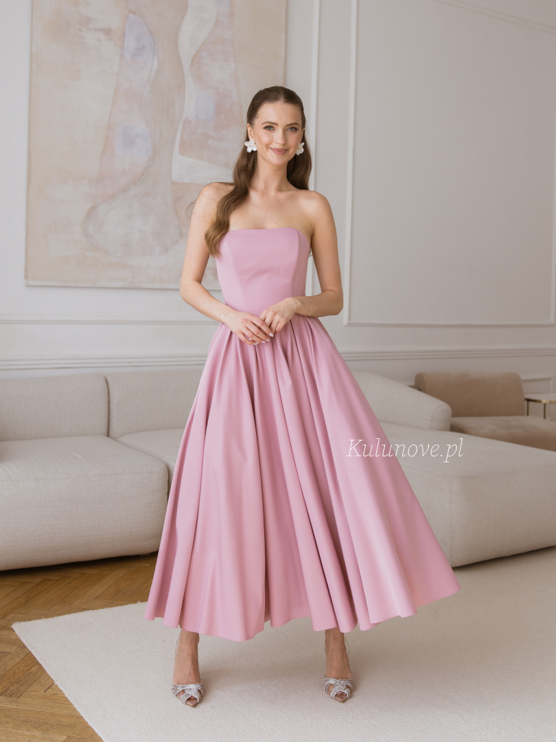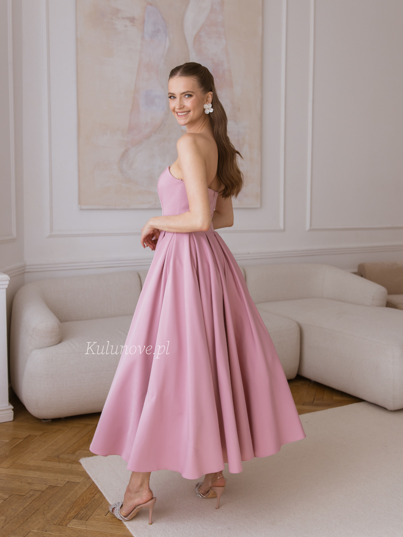 Bombshell midi - romantyczna gorsetowa sukienka midi w kolorze brudnego różu z obszernym dołem idealna na wesele