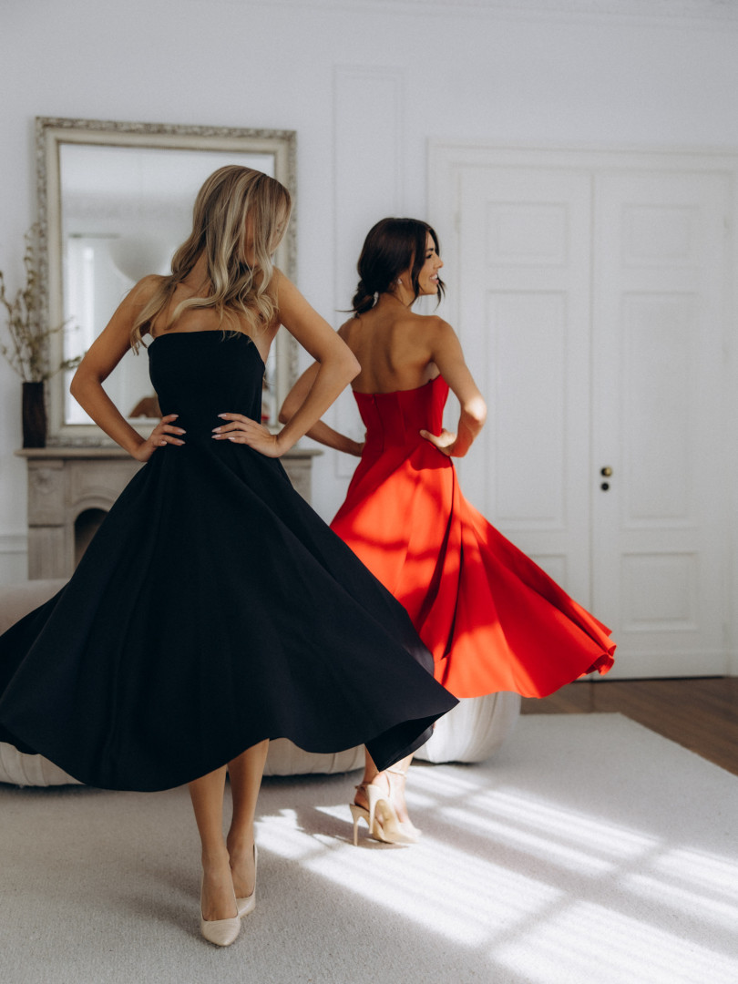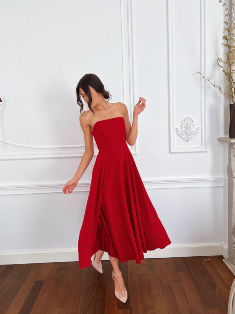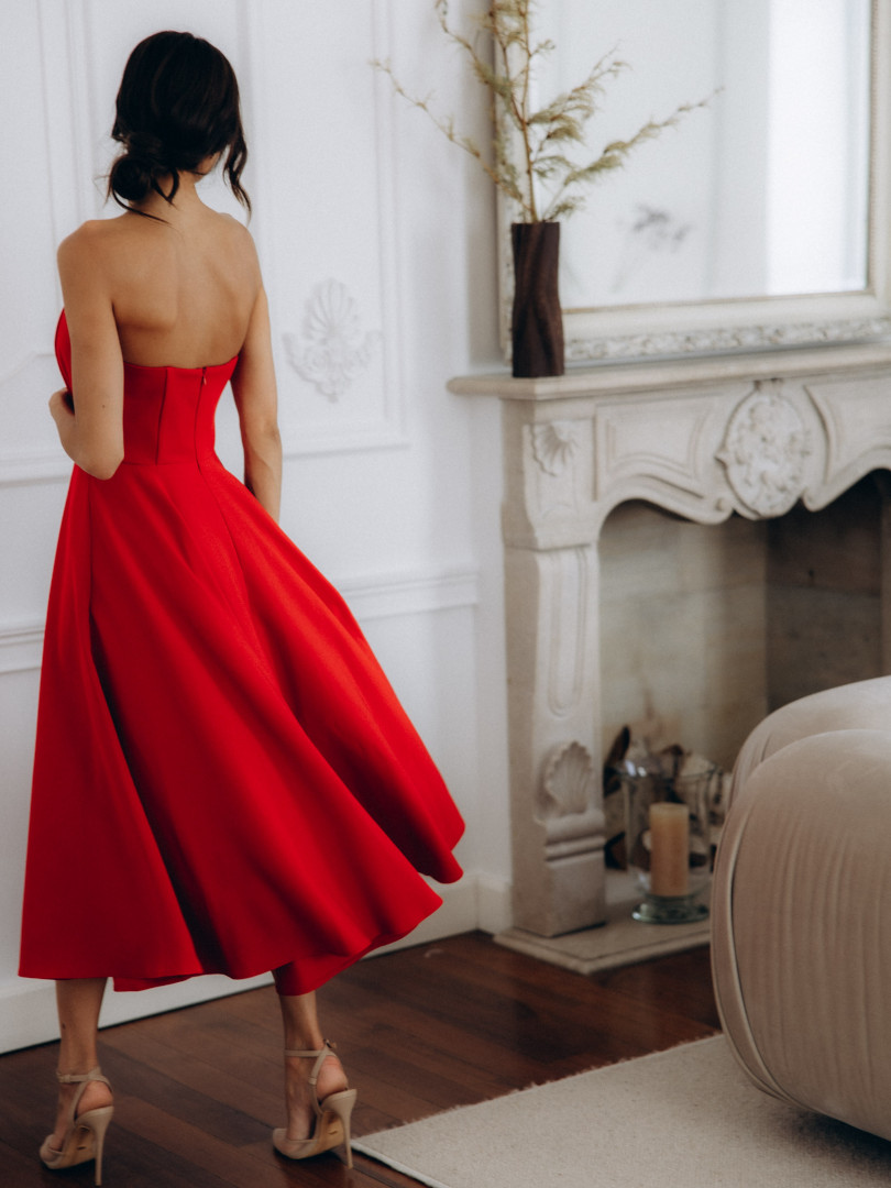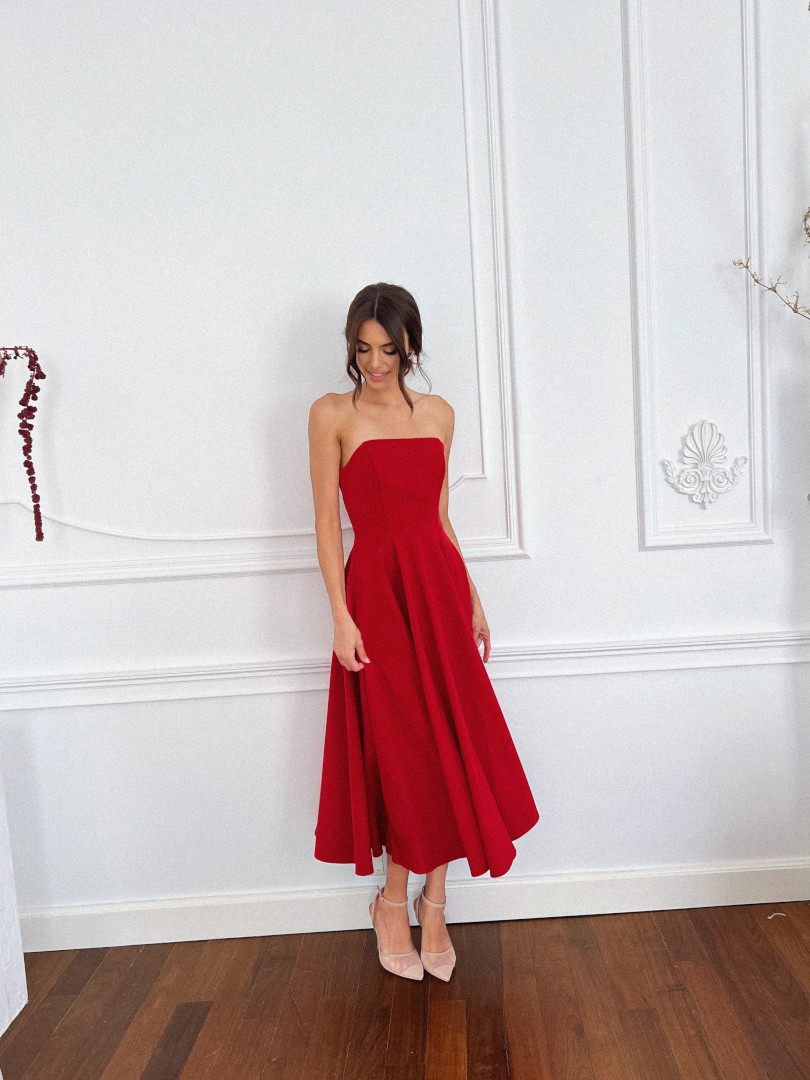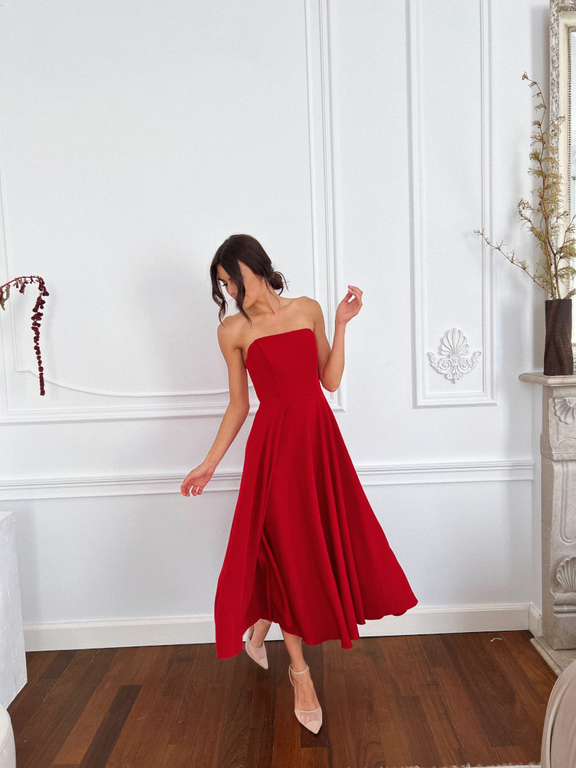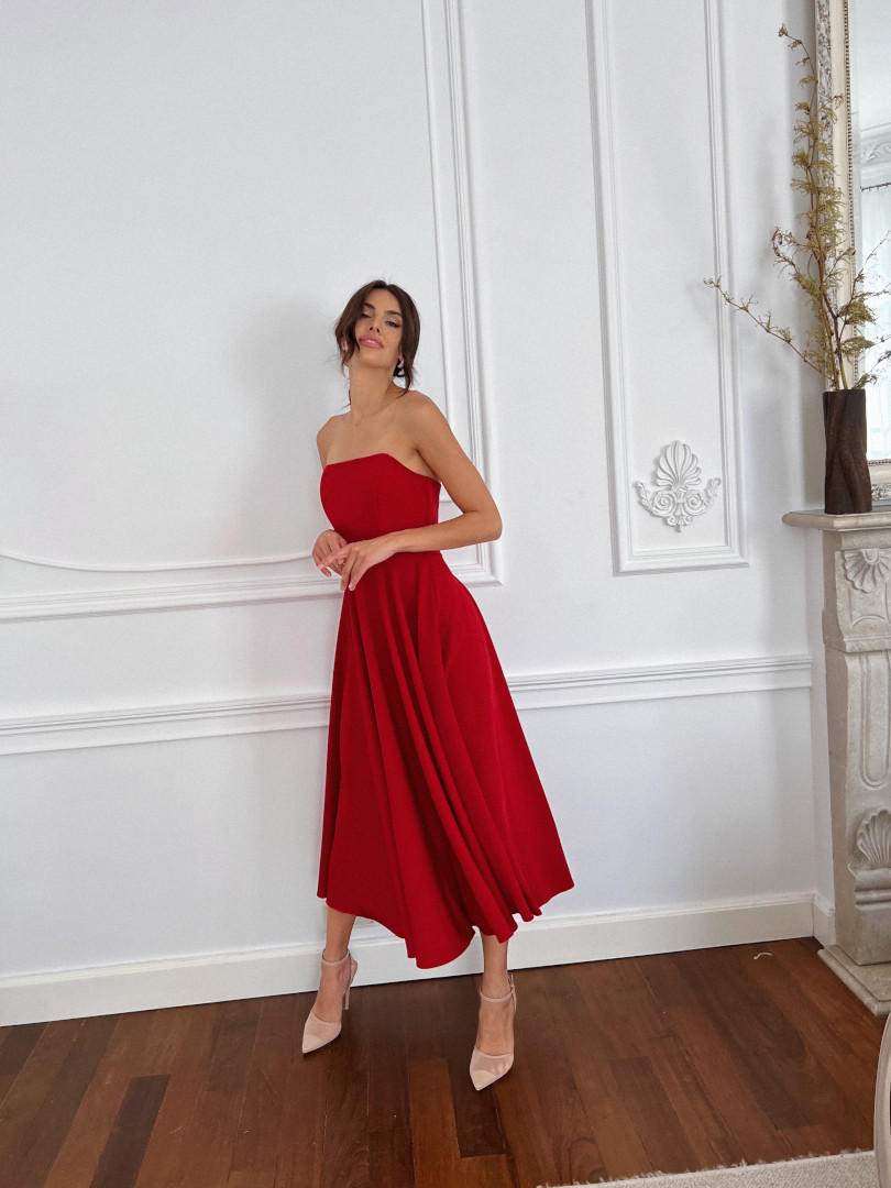 Bridget - gorsetowa czerwona sukienka midi bez ramiączek