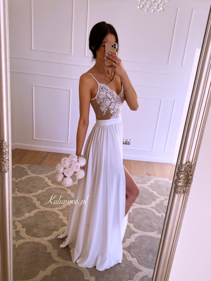 Cynthia - klasyczna, prosta suknia w kolorze śmietankowym Okazje