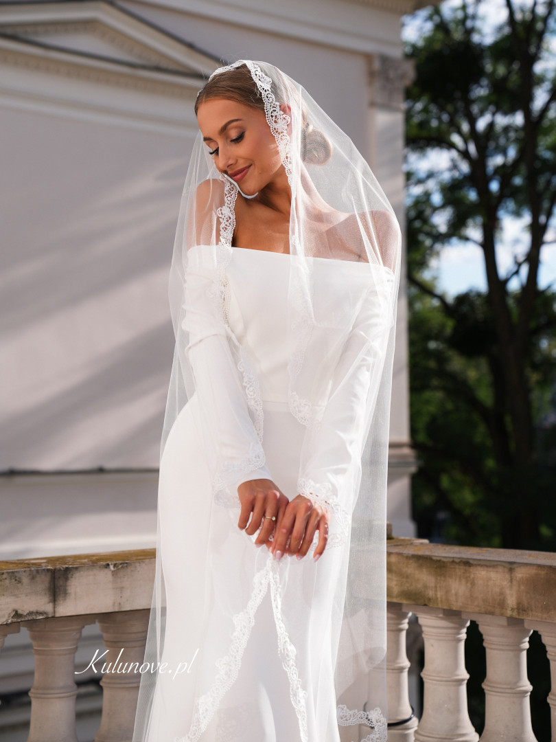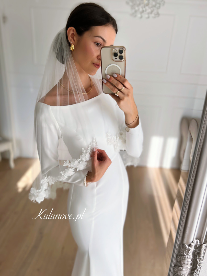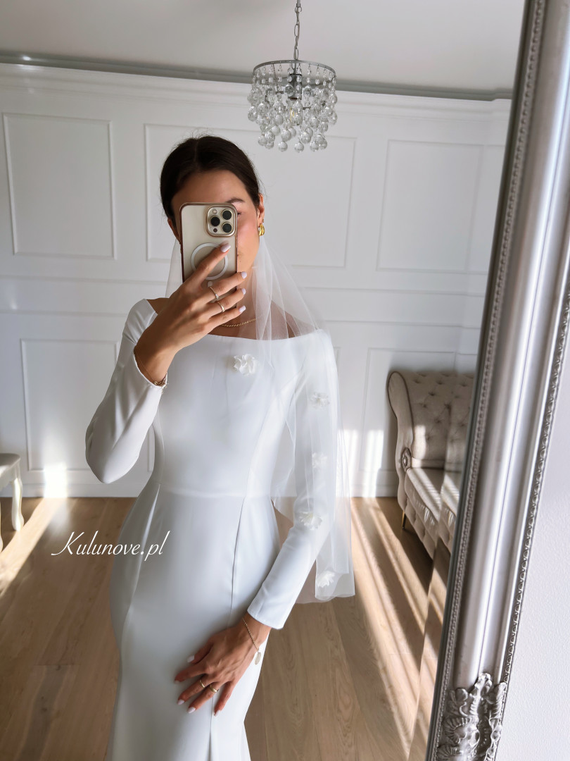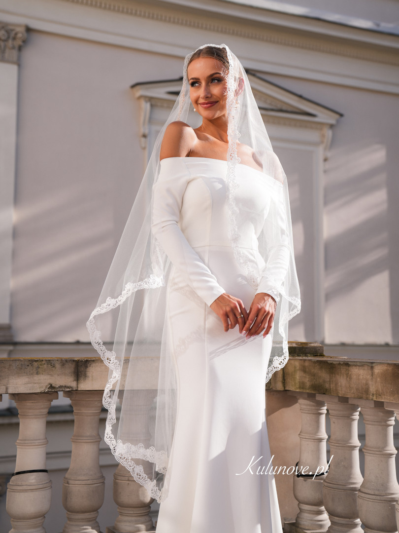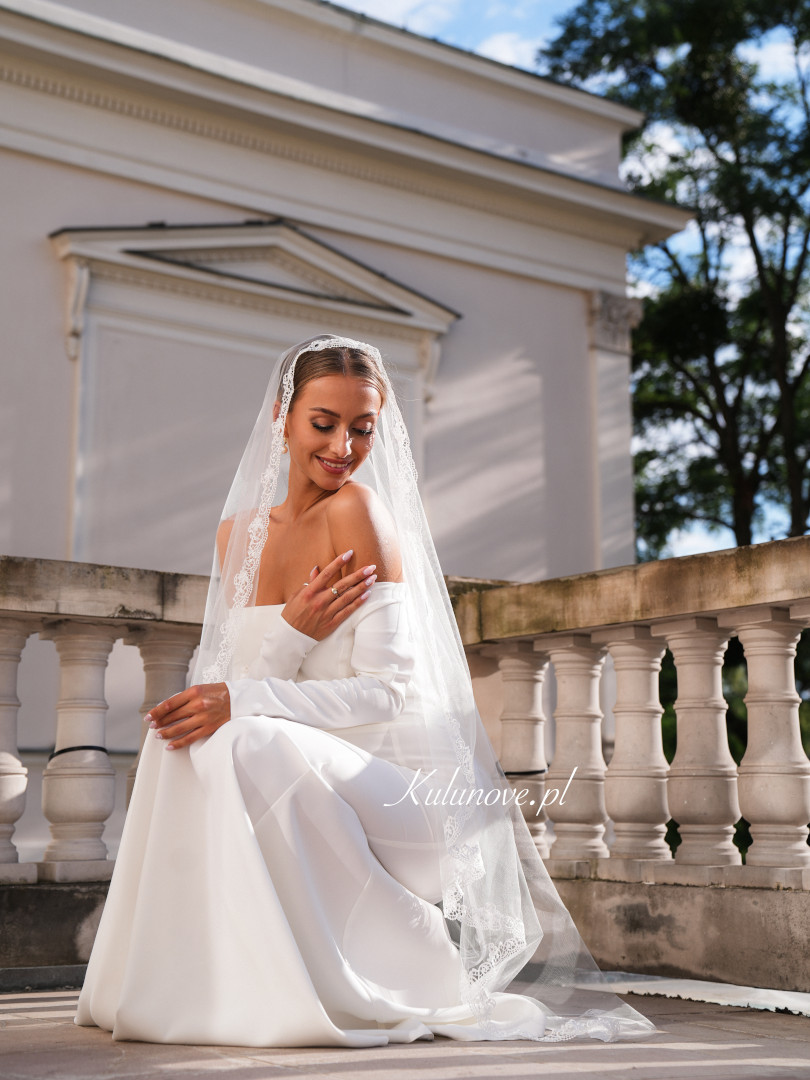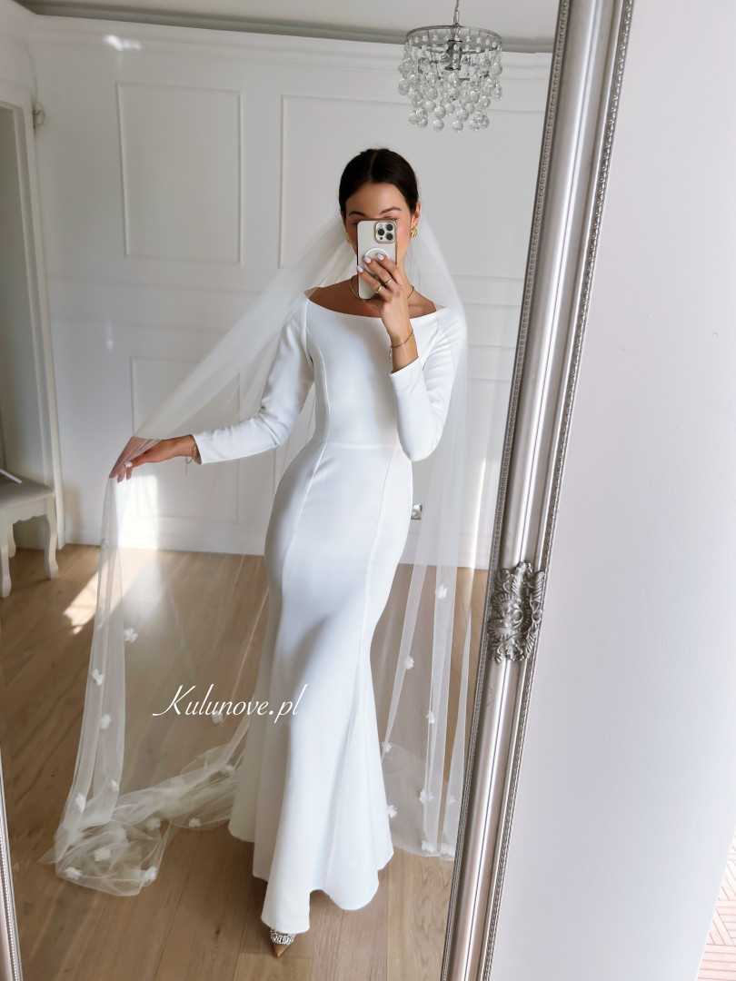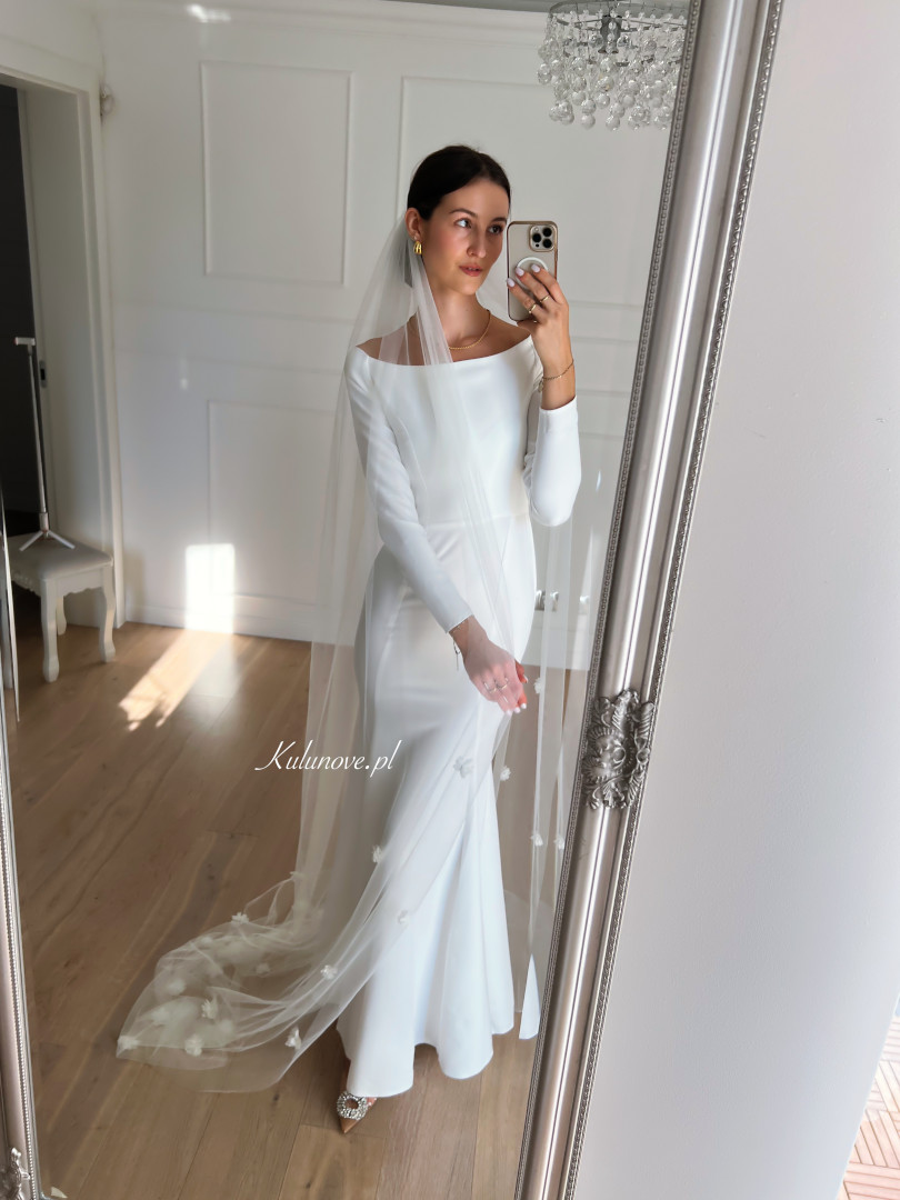 Długa, prosta sukienka idealna na ślub dla minimalistycznej Panny Młodej.