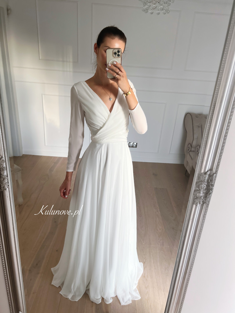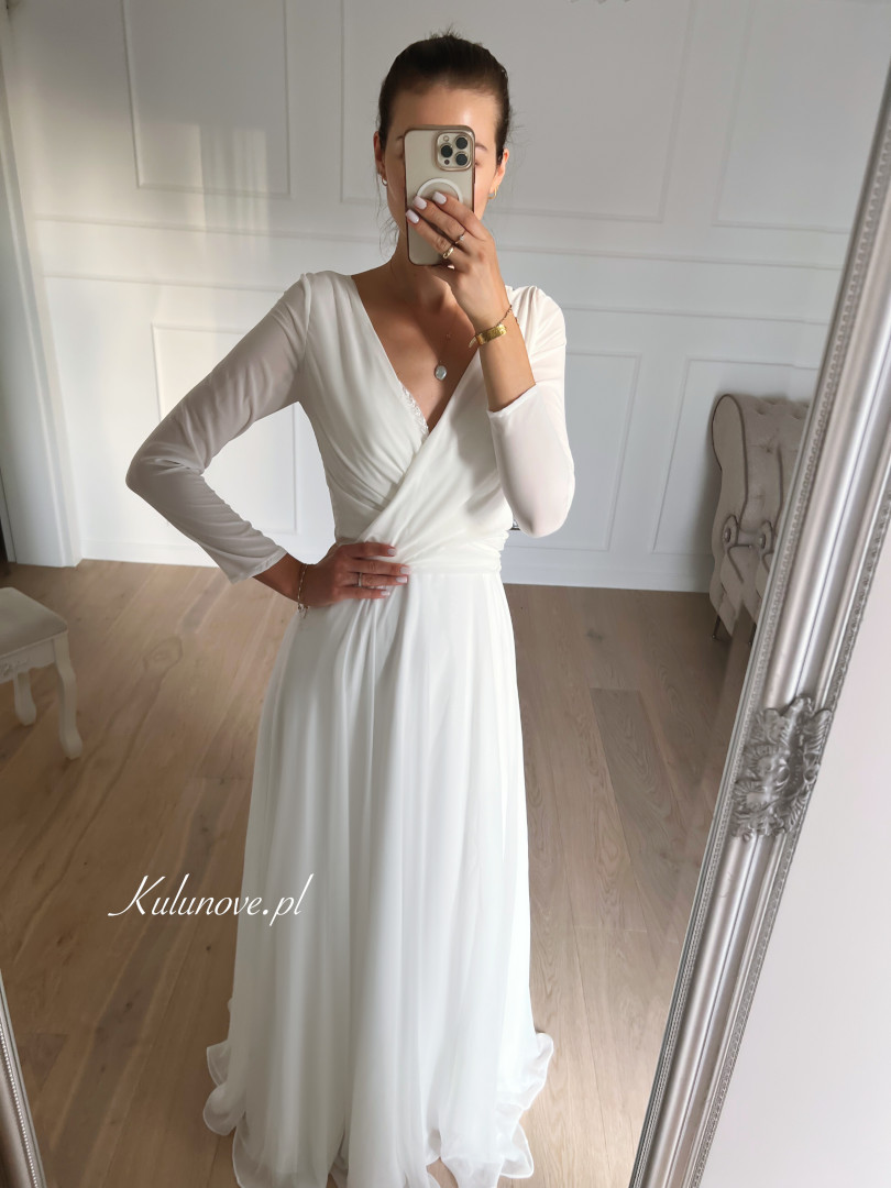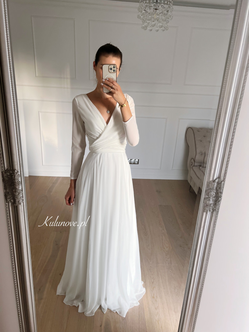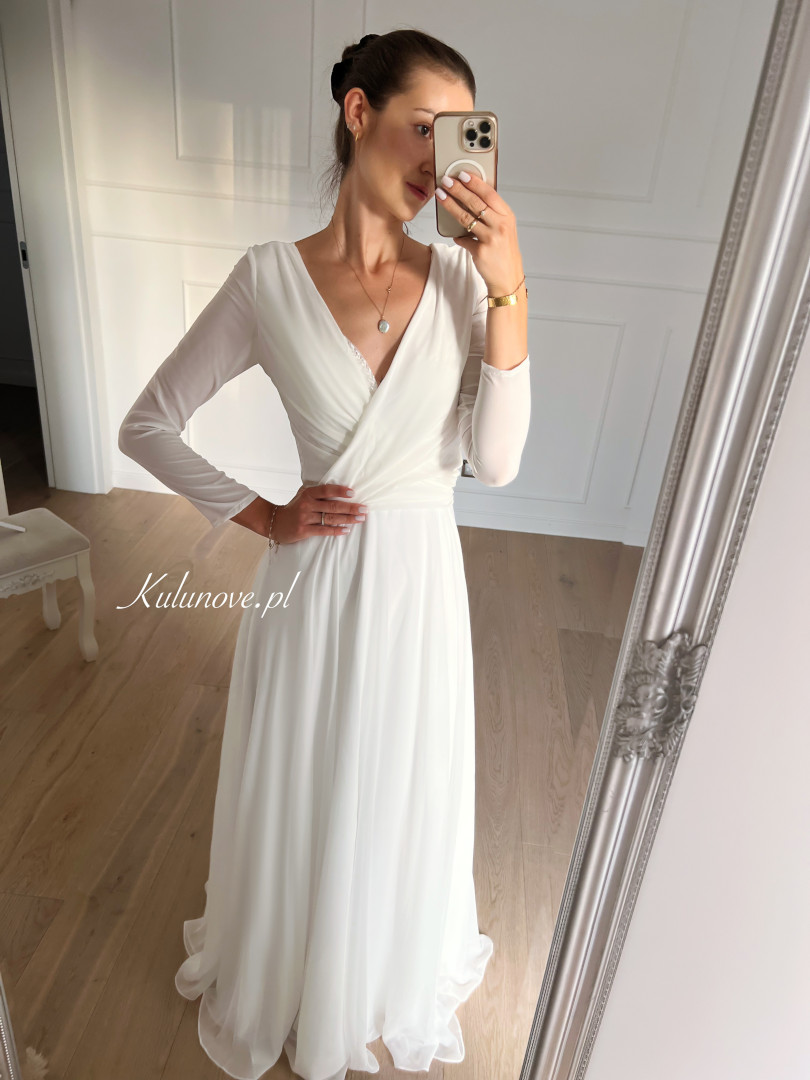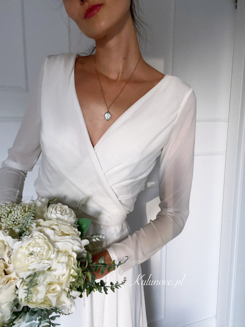 Cienki kopertowy sweterek ślubny wiązany na kilka sposobów