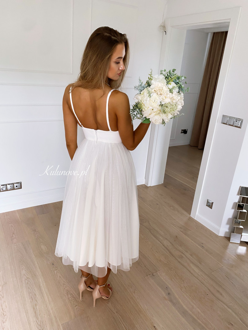 Prosimy o zachowanie szczególnej ostrożności przy zapinaniu sukienki. Sugerujemy, aby przed zapięciem upewnić się, że tiul jest równo ułożony i nie znajduje się zbyt blisko zamka. Dbałość o ten szczegół pomoże uniknąć przypadkowych zniszczeń oraz przedłuży trwałość produktu.
