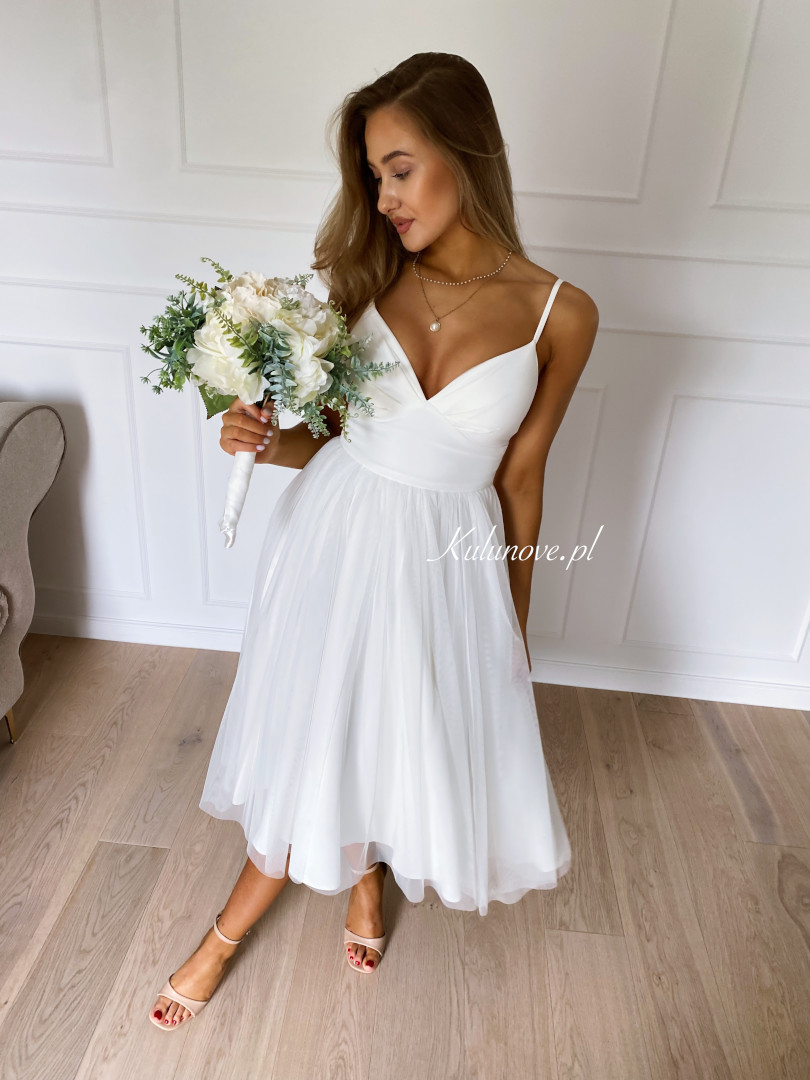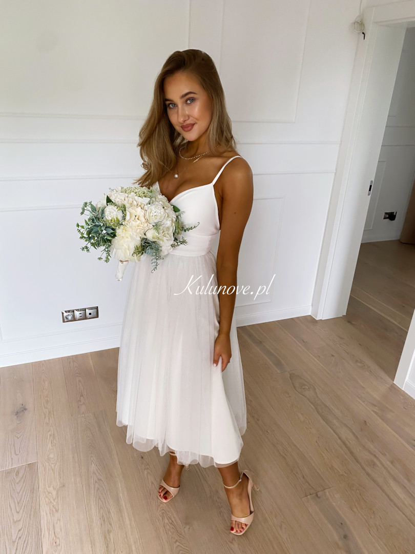 Sukienka o długości midi szyta na podwójnym szerokim kole, niesamowicie układa się podczas tańca.
