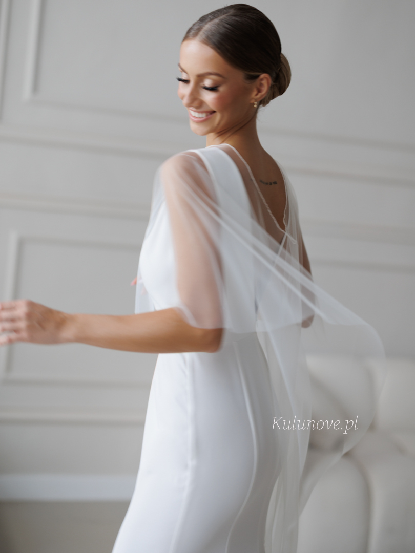Romantyczna i elegancka suknia ślubna w kolorze ecru, stworzona z myślą o Pannie Młodej, która pragnie subtelnej nowoczesności.