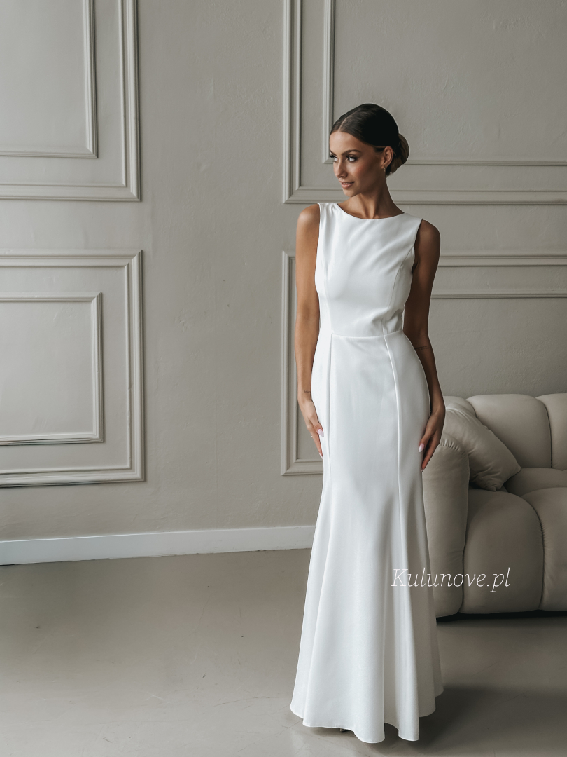 Dakota - ślubna dopasowana sukienka maxi z efektownym dekoltem na plecach