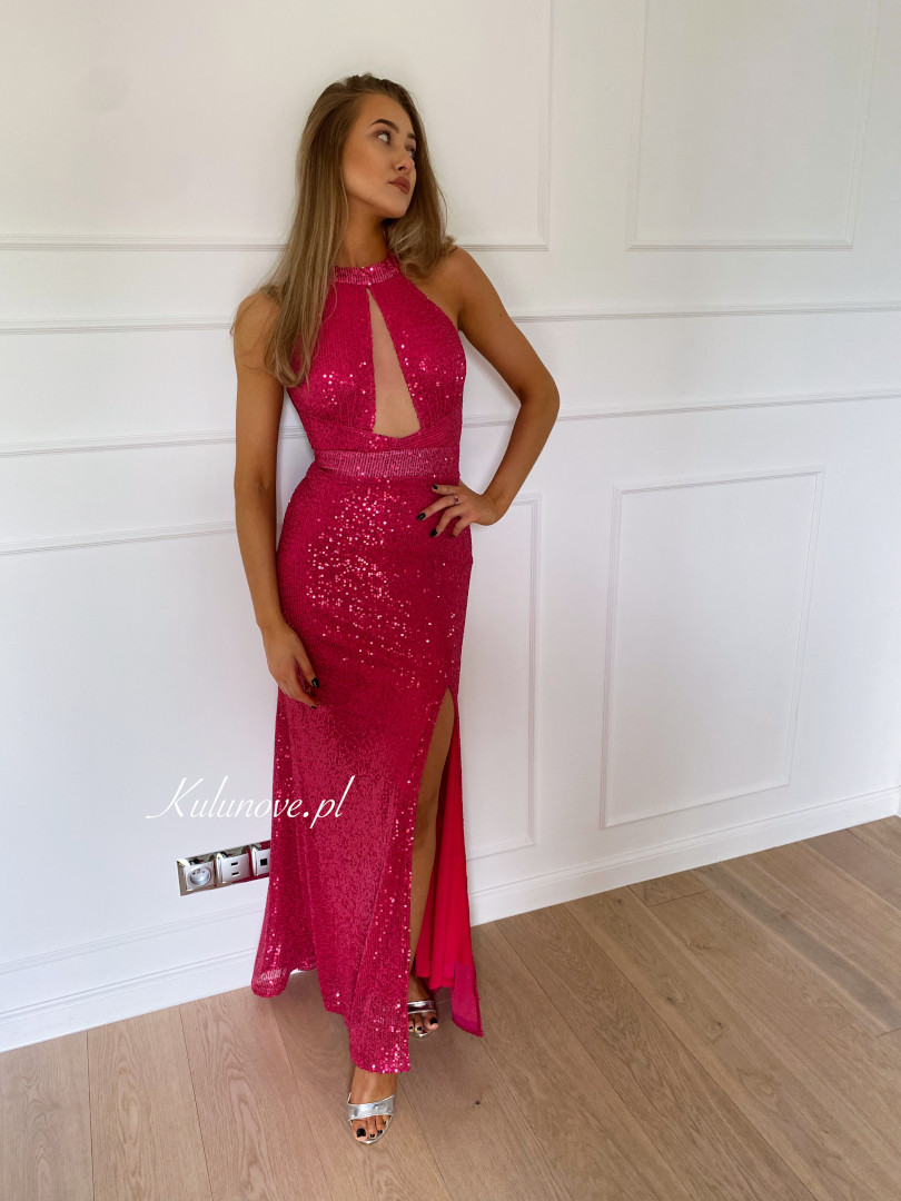 Niesamowita sukienka o długości maxi w całości pokryta błyszczącymi cekinami.