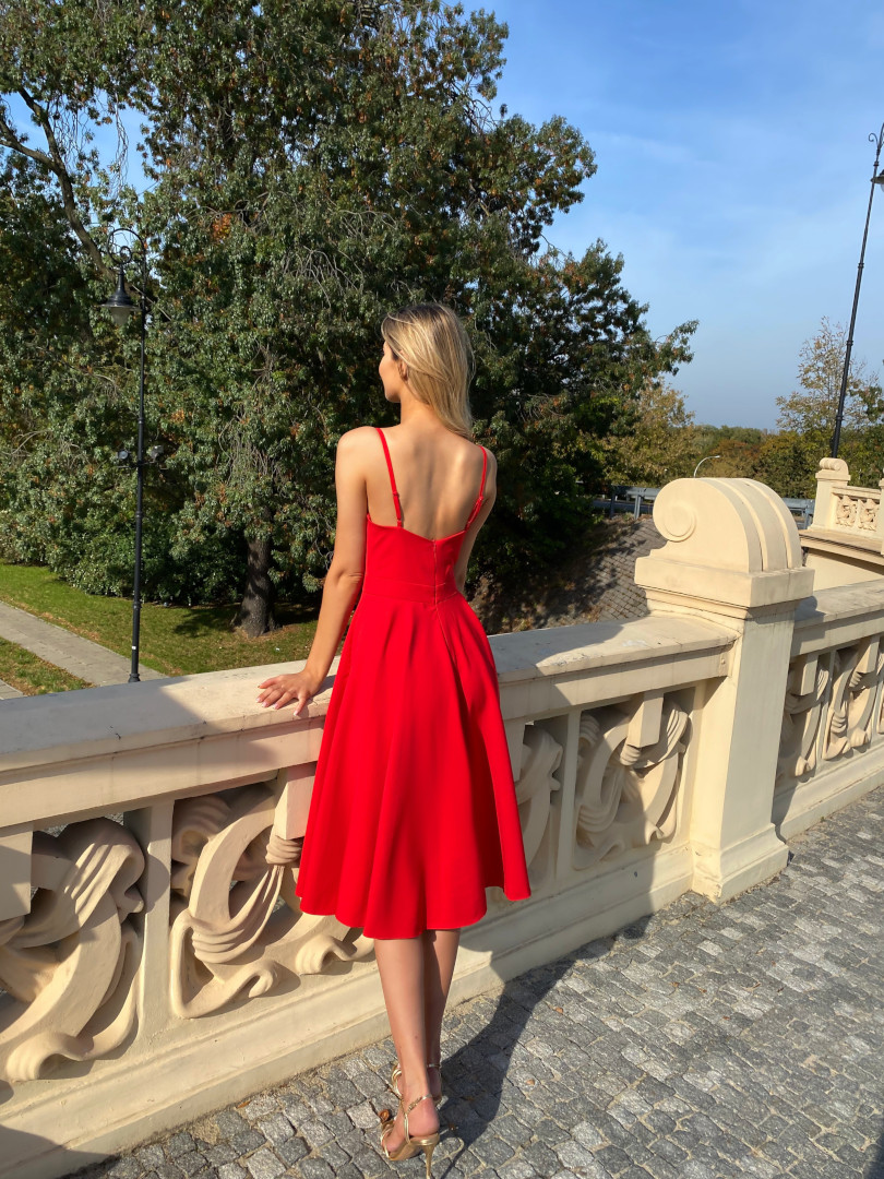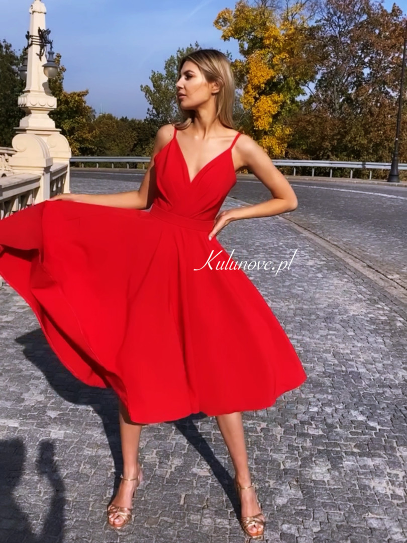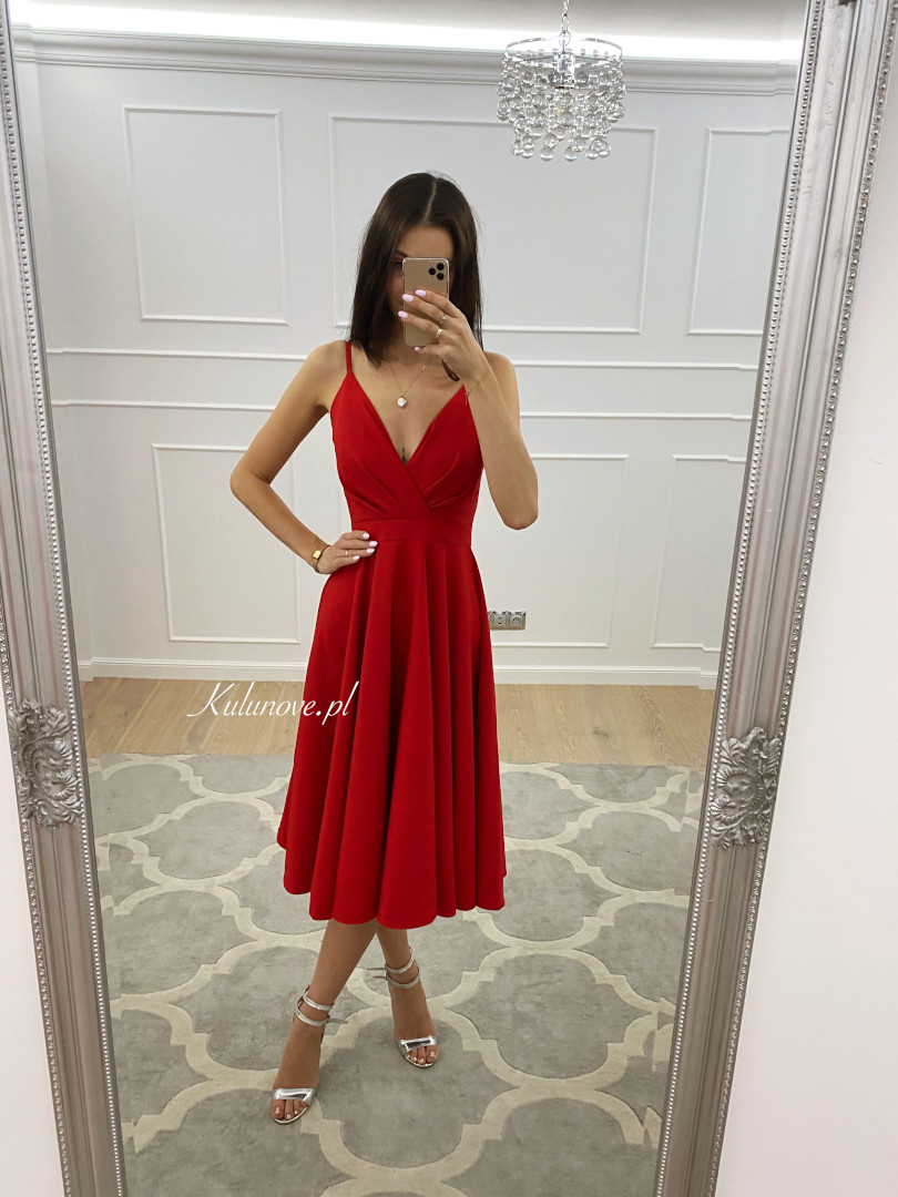 Elisabeth - sukienka midi na ramiączkach z dekoltem na zakładkę