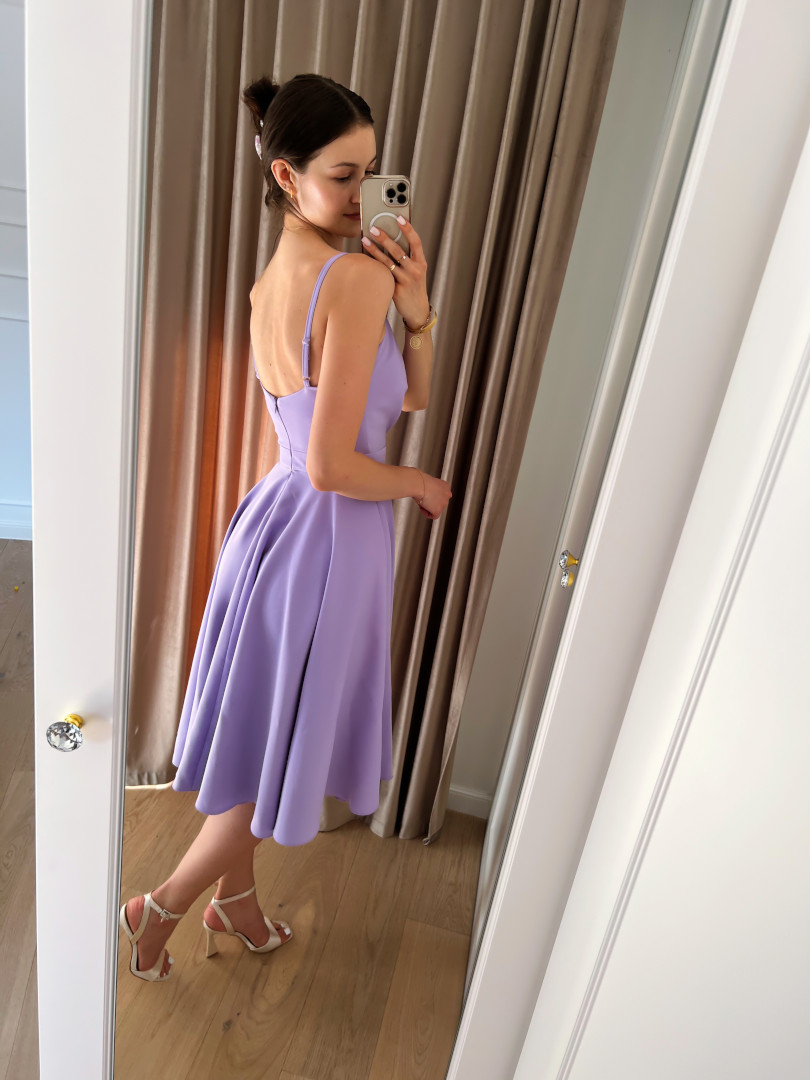 Elisabeth midi - fioletowa sukienka rozkloszowana na wesele