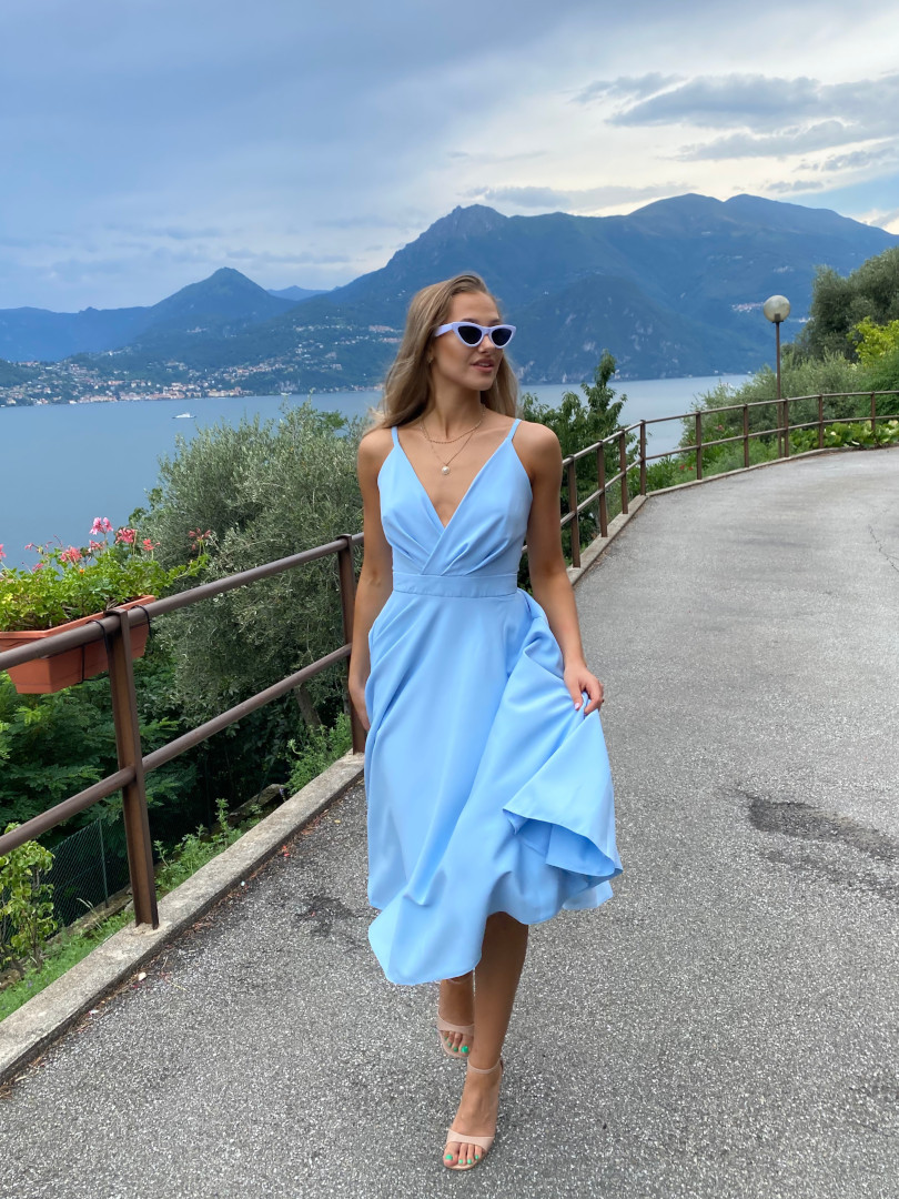 Elisabeth - sukienka midi na ramiączkach z dekoltem na zakładkę