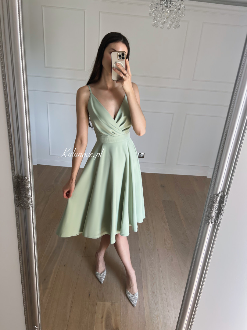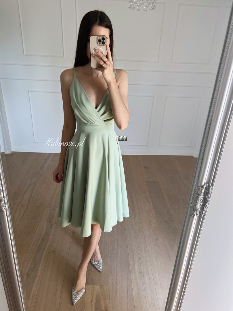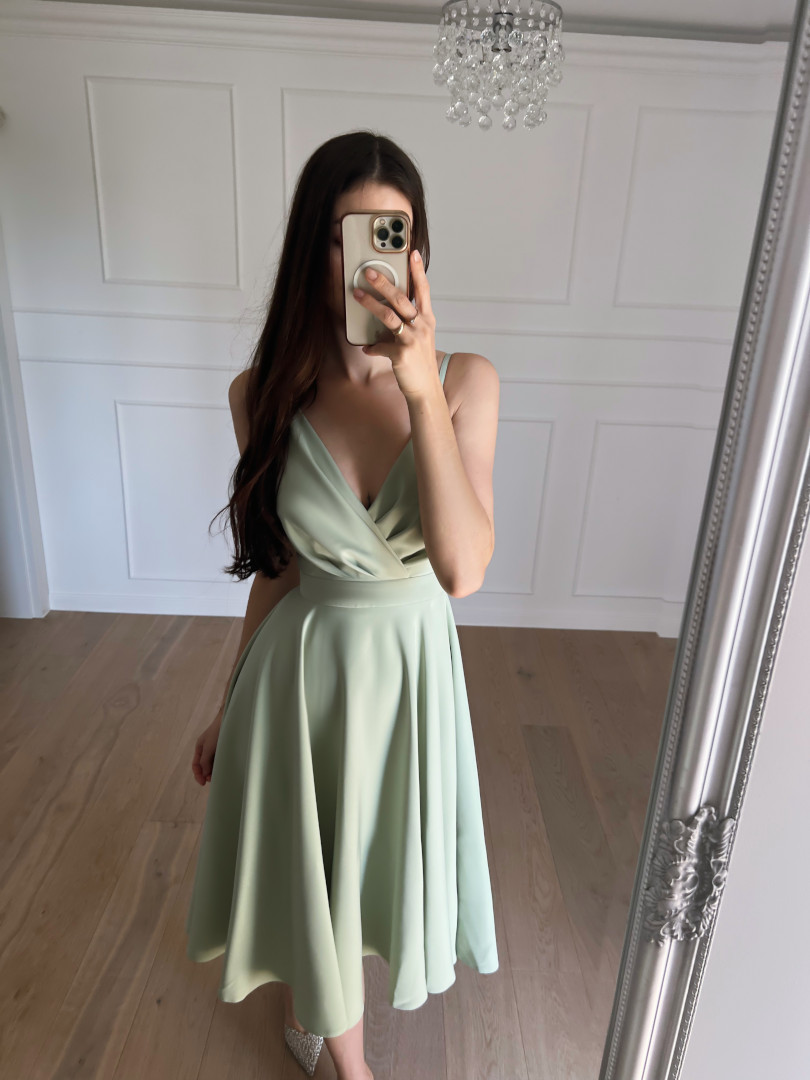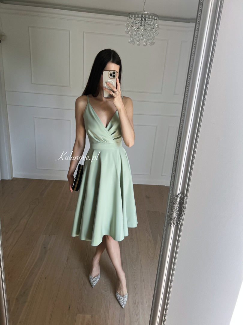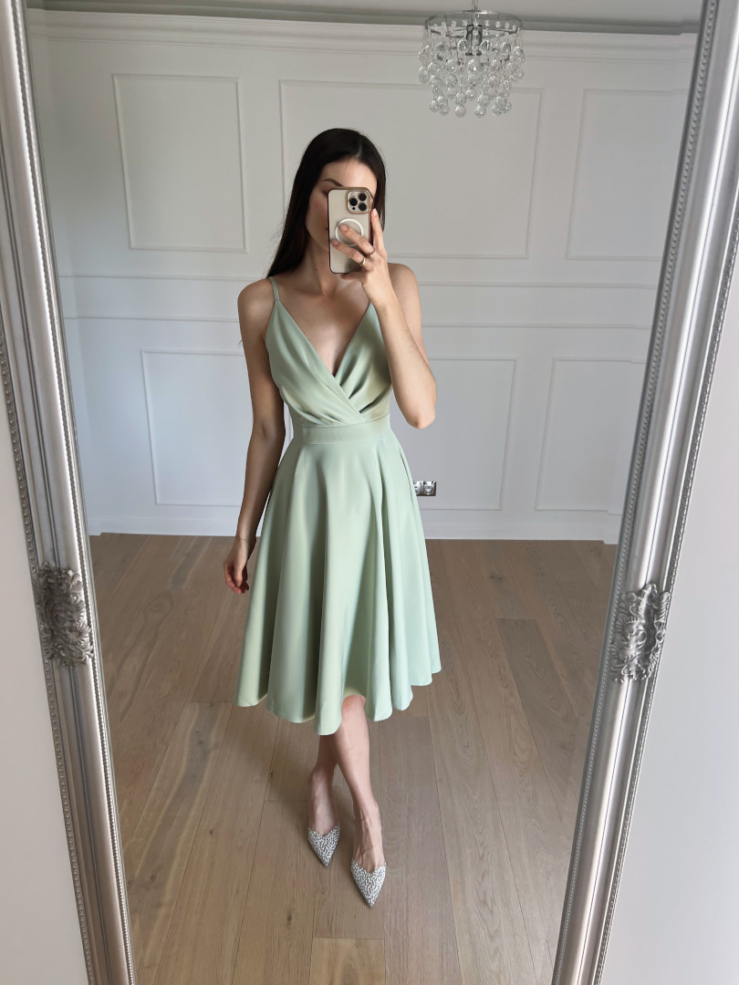 Elisabeth midi szałwiowa - sukienka średniej długości na cienkich ramiączkach z rozkloszowaną spódnicą