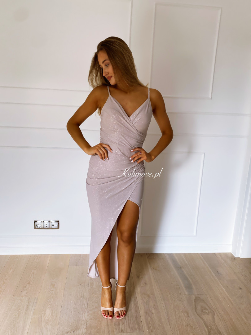 Andromeda - długa połyskująca sukienka z krótkim rękawkiem Sukienki dla wysokich kobiet Outlet