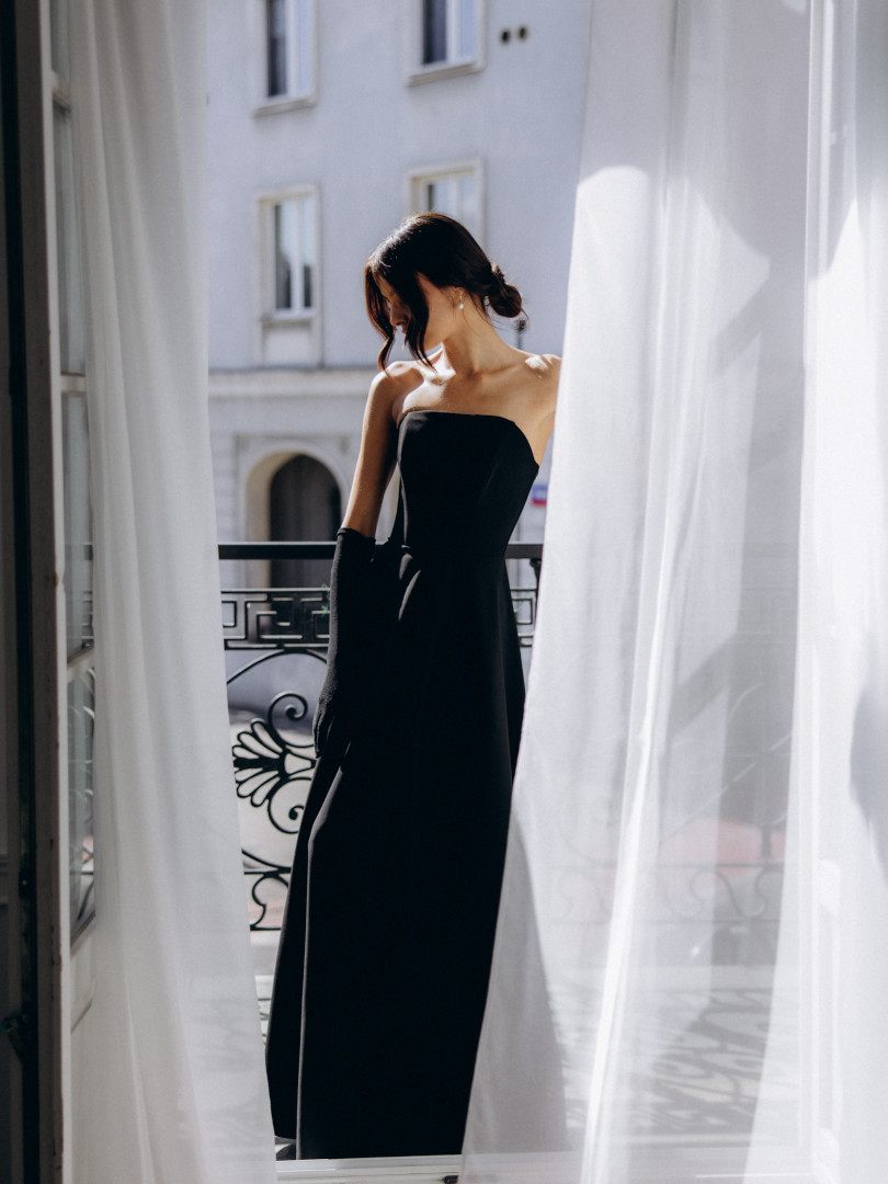 Długość: Zmierz długość od ramienia lub od miejsca, które ma stanowić górną linię sukienki, aż do miejsca, gdzie kreacja ma się kończyć.