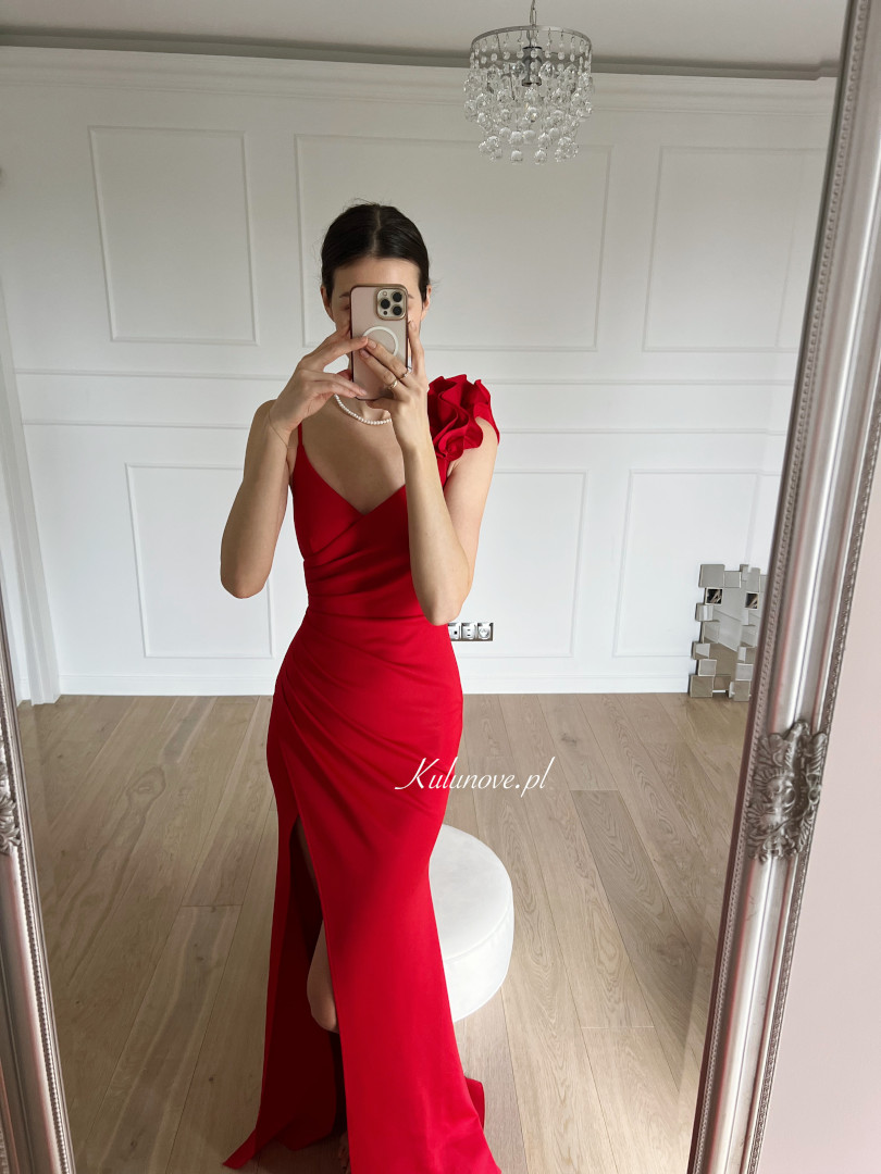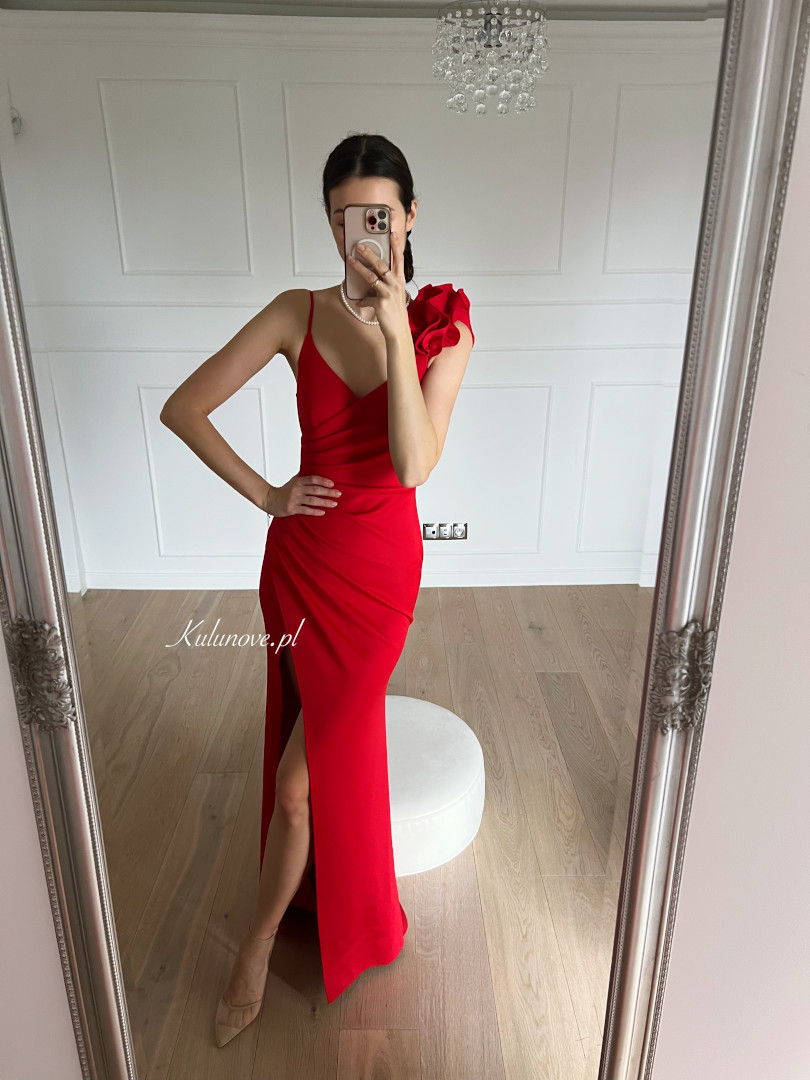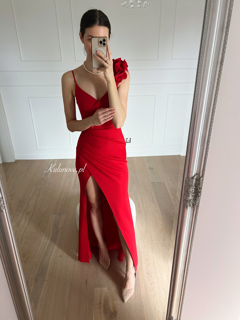 Andrea - dopasowana długa czerwona sukienka z rozporkiem