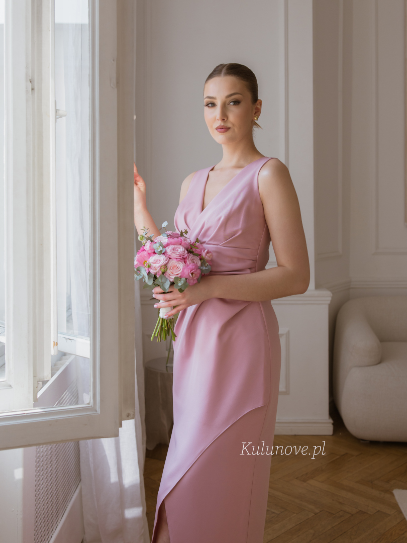 Konstrukcja sukienki została zaprojektowana tak, aby podkreślać proporcje figury, jednocześnie zachowując komfort noszenia.