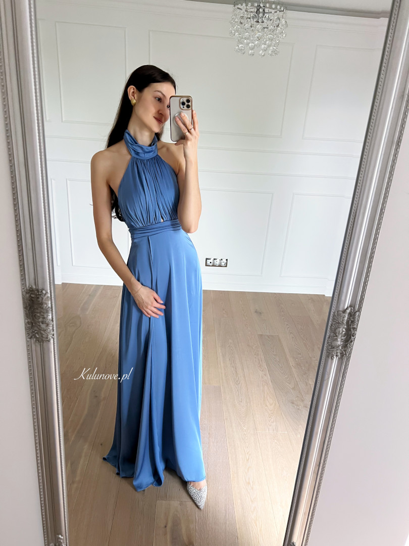 Andromeda - długa połyskująca sukienka z krótkim rękawkiem Sukienki dla wysokich kobiet Outlet