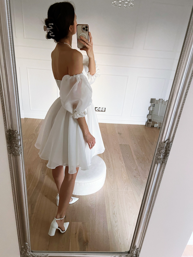 Bufiaste rękawki nie są przyszyte do sukienki, dzięki czemu możemy ją modyfikować.