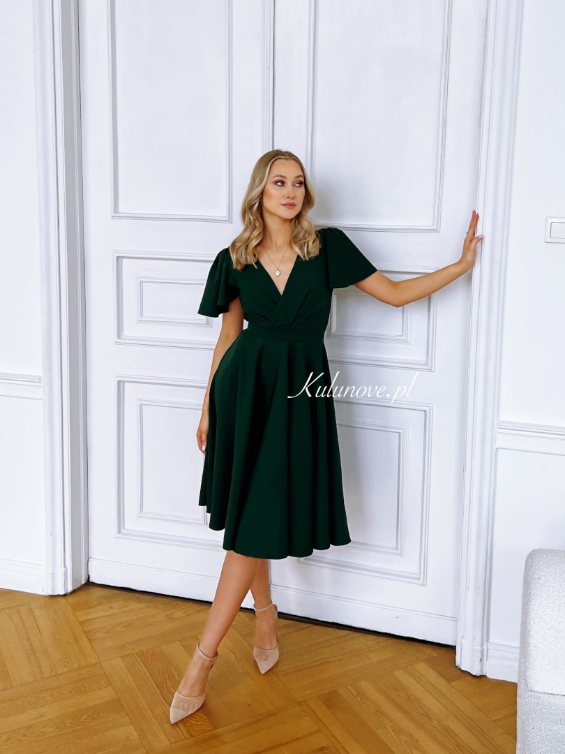 Jennifer - sukienka mid z kopertowym dekoltem w kolorze butelkowej zieleni