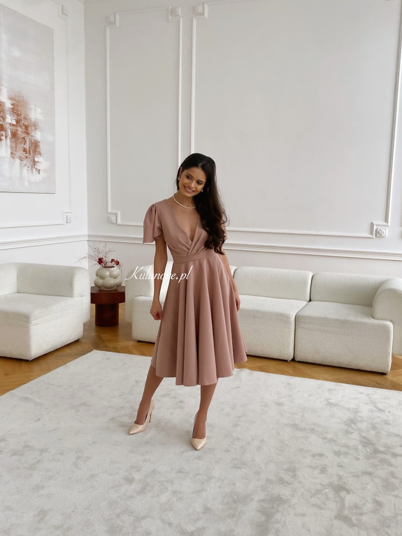 Jennifer - sukienka za kolano z zakrytymi ramionami w kolorze brudnego różu
