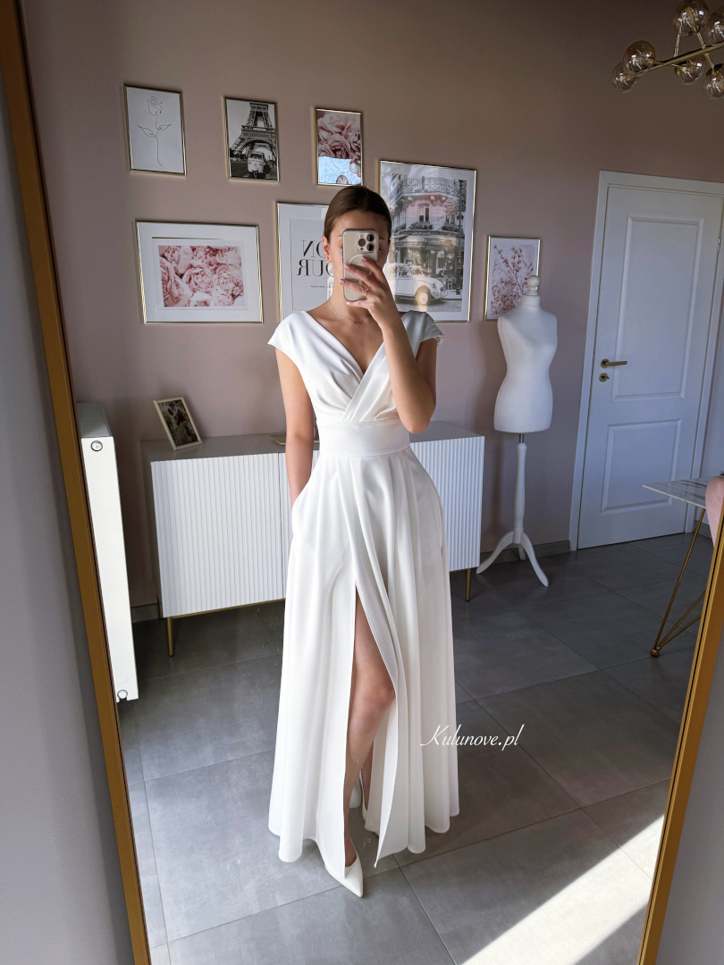 Długość maxi i klasyczny krój nadają kreacji szlachetności
