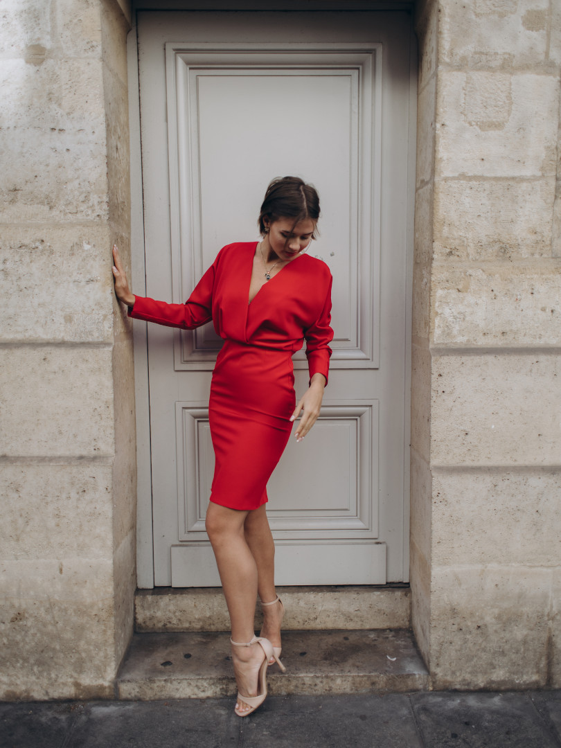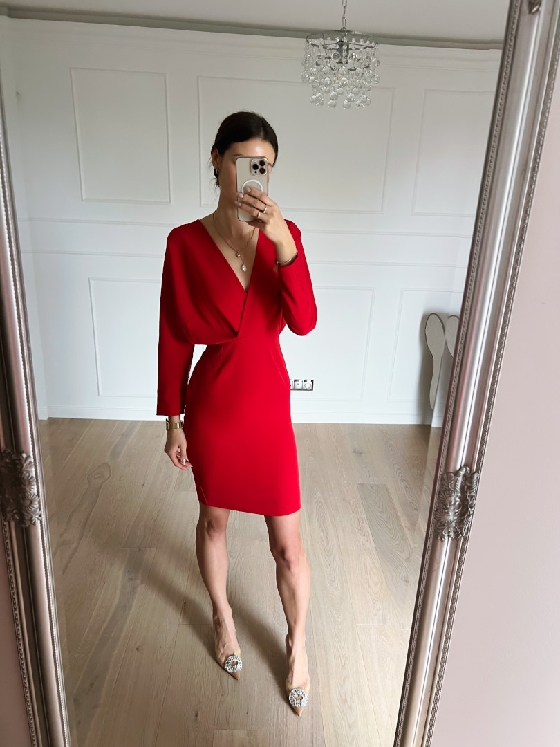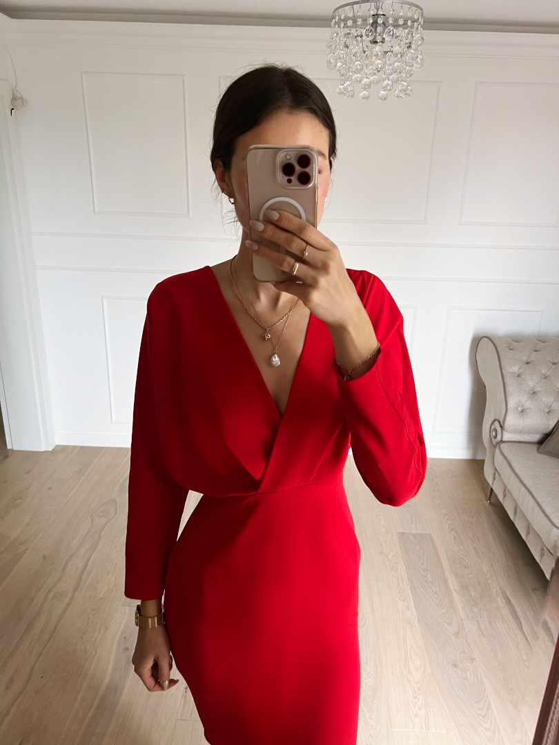 Angelina maxi - czerwona rozkloszowana kopertowa sukienka maxi z odkrytymi ramionami Styl