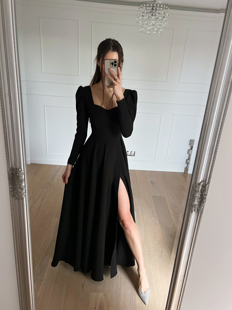 Sukienka maxi w kolorze czarnym w stylu retro.