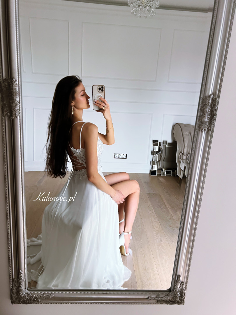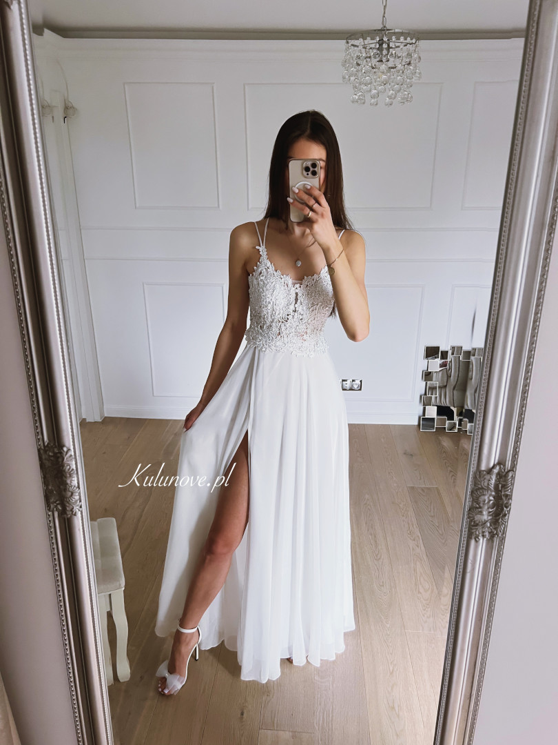 Cynthia - klasyczna, prosta suknia w kolorze śmietankowym Okazje