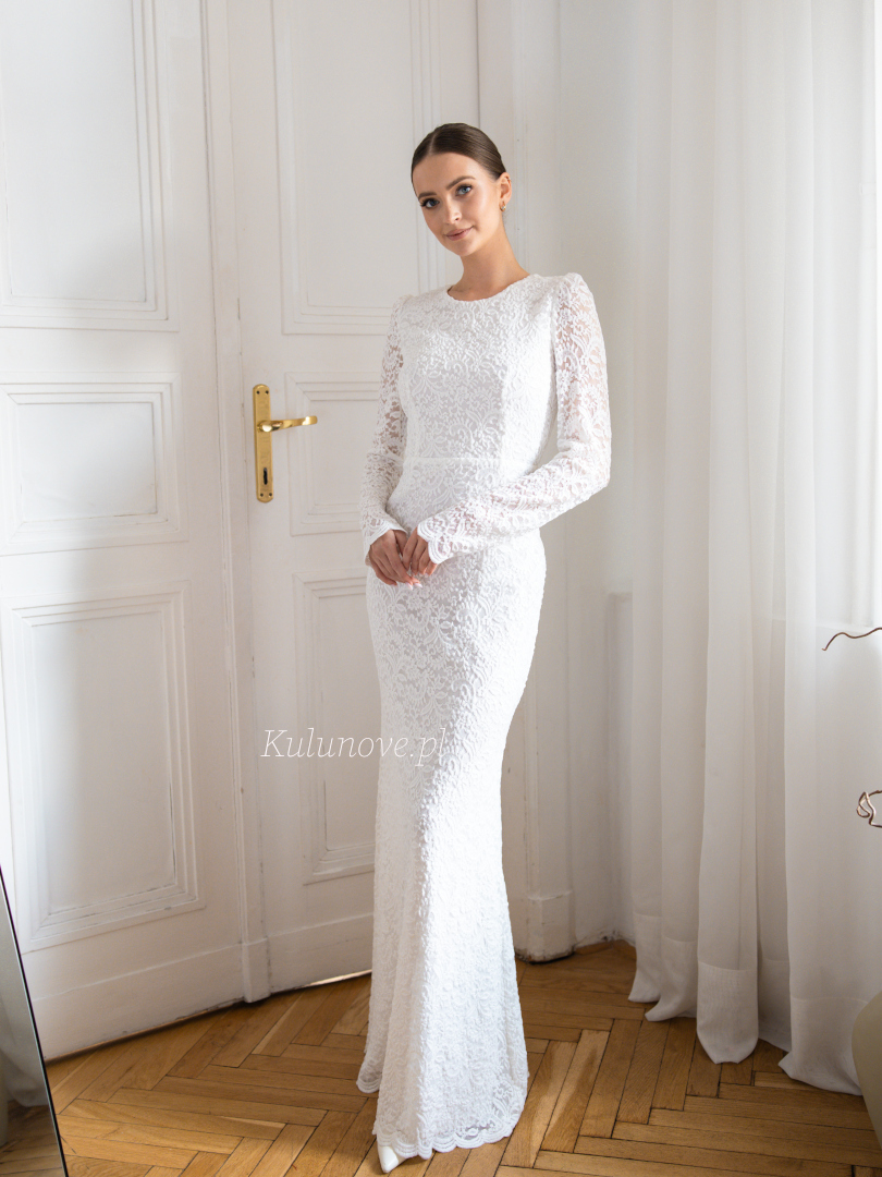 Kora - dopasowana koronkowa suknia ślubna na długi rękaw o kroju rybki