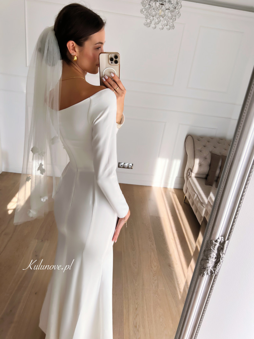 Cynthia - klasyczna, prosta suknia w kolorze śmietankowym Okazje