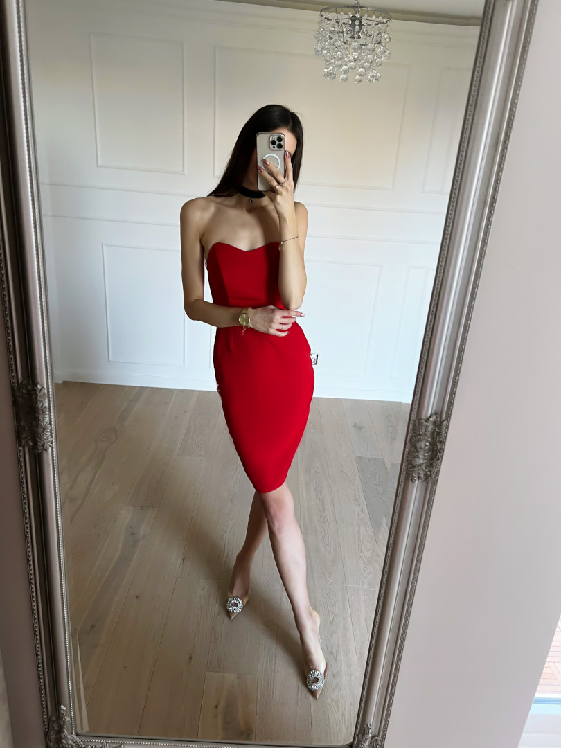 Leandra  mini - czerwona ołówkowa sukienka z dekoltem w kształcie serca