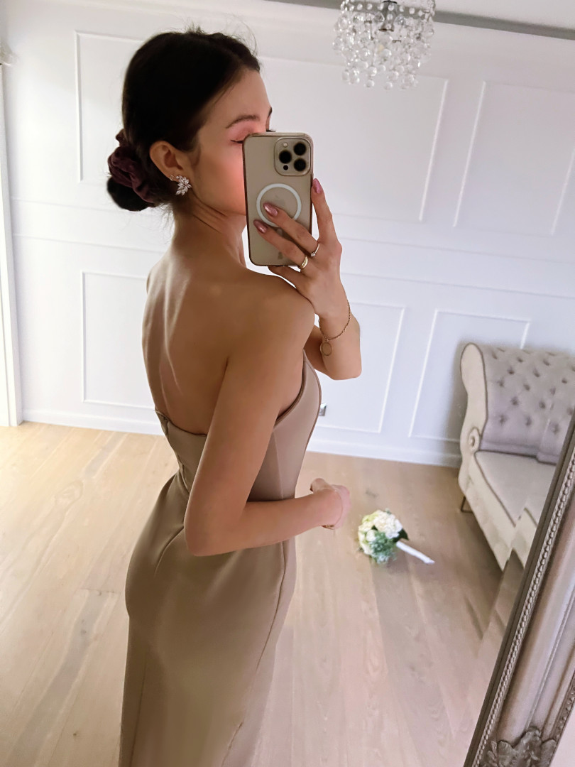 Piękny, ciemny beż idealnie będzie pasował na wesele lub inne eleganckie wyjście.