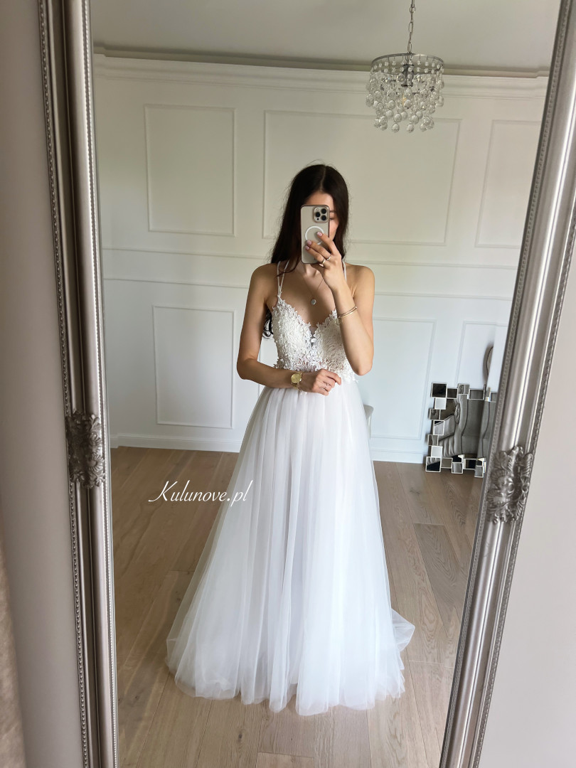 Lena - tiulowa suknia ślubna z koronkową górą i paseczkami na plecach