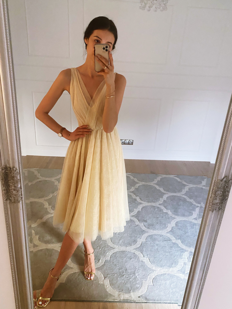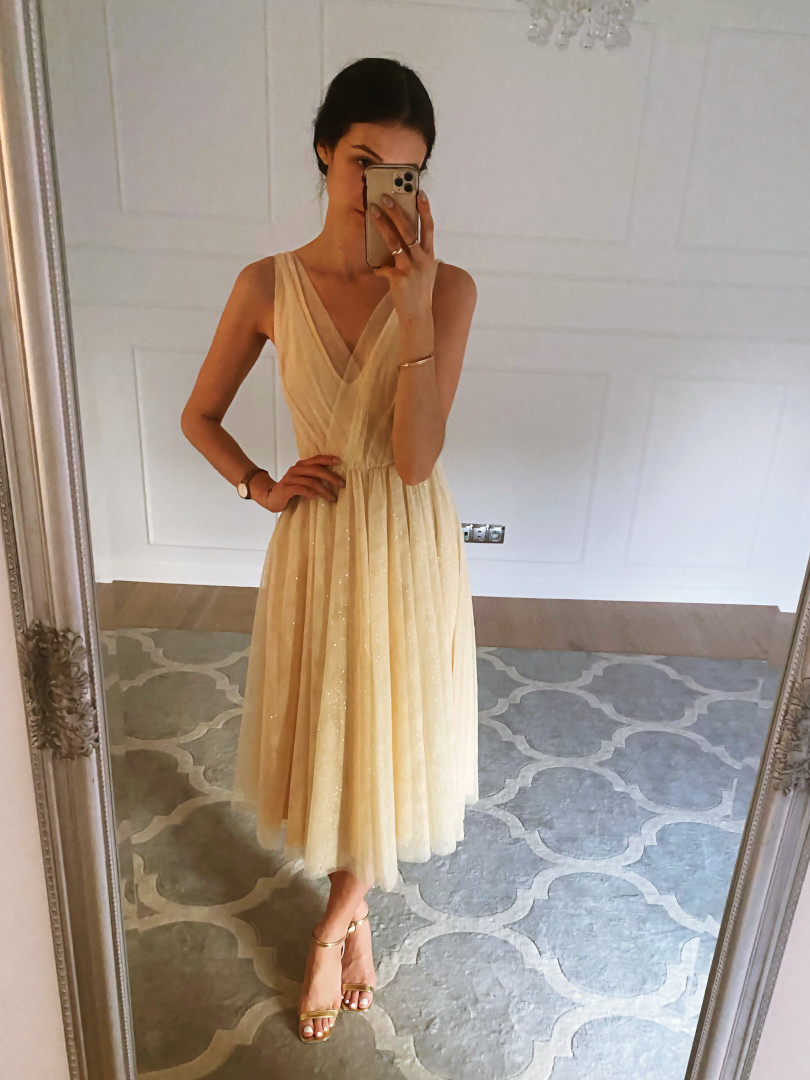 Prosimy o zachowanie szczególnej ostrożności przy zapinaniu sukienki. Sugerujemy, aby przed zapięciem upewnić się, że tiul jest równo ułożony i nie znajduje się zbyt blisko zamka. Dbałość o ten szczegół pomoże uniknąć przypadkowych zniszczeń oraz przedłuży trwałość produktu.