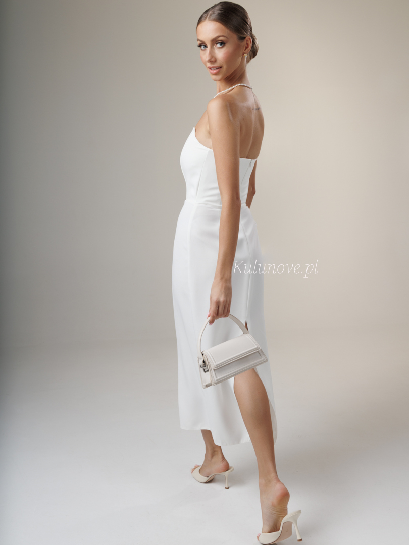 Liv - minimalistyczna sukienka ślubna midi ecru z efektem rozcięcia