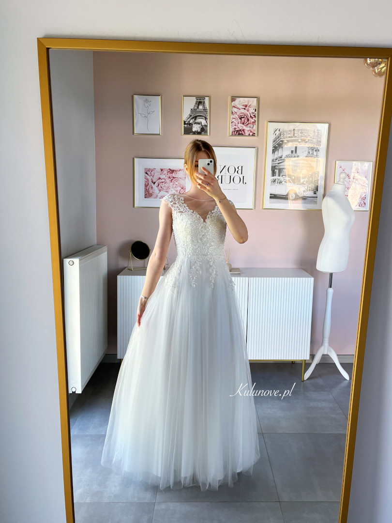Prosimy o zachowanie szczególnej ostrożności przy zapinaniu sukienki. Sugerujemy, aby przed zapięciem upewnić się, że tiul jest równo ułożony i nie znajduje się zbyt blisko zamka. Dbałość o ten szczegół pomoże uniknąć przypadkowych zniszczeń oraz przedłuży trwałość produktu.