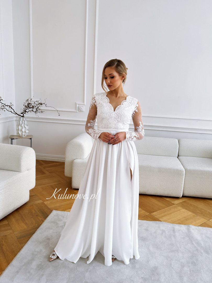 Cynthia - klasyczna, prosta suknia w kolorze śmietankowym Okazje