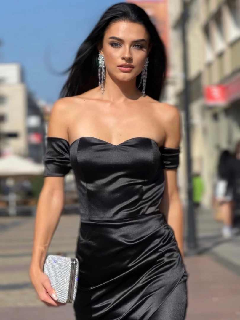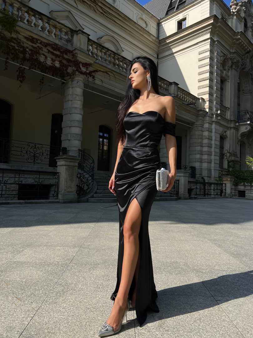 Marissa czarna - długa dopasowana wieczorowa sukienka idealna na studniówkę
